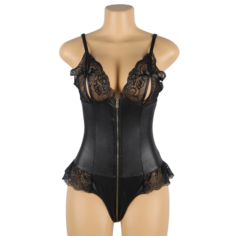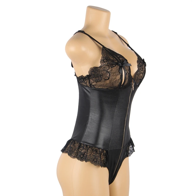Женское нижнее белье Comeondear, Сексуальное Женское боди, эротический комбинезон, кружевное кожаное боди с глубоким V-образным вырезом, RA80939, размера плюс