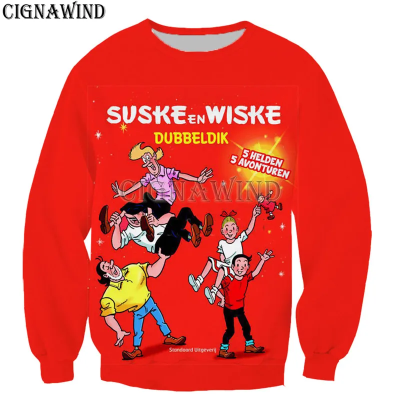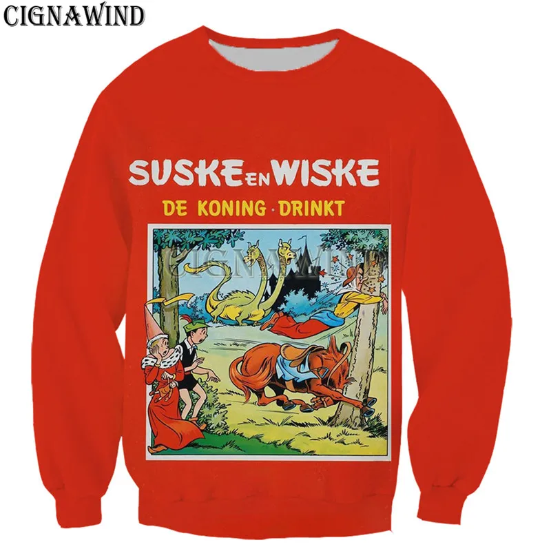 Модная мультяшная толстовка с капюшоном Suske en Wiske для мужчин и женщин, толстовки с 3D принтом, свитшоты, уличные Топы в стиле хип-хоп