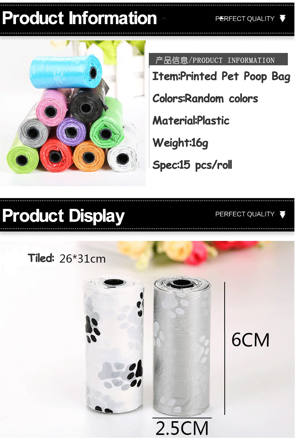 Название: биоразлагаемые корм для питомцев, Собаки СумкаРазмер: 15 шт./лот 29x27x13 смРисунок: принт лапыЦвет: СлучайныйСпецификация: 15 шт/рулонПосылка включает в себя: 1/3/5/10/20 рулонов