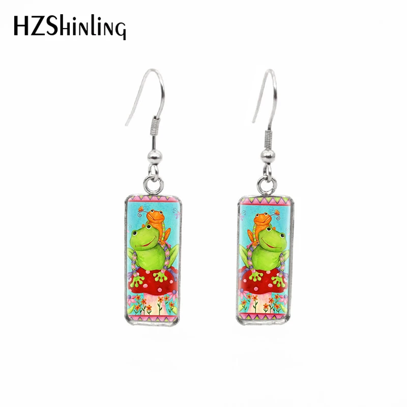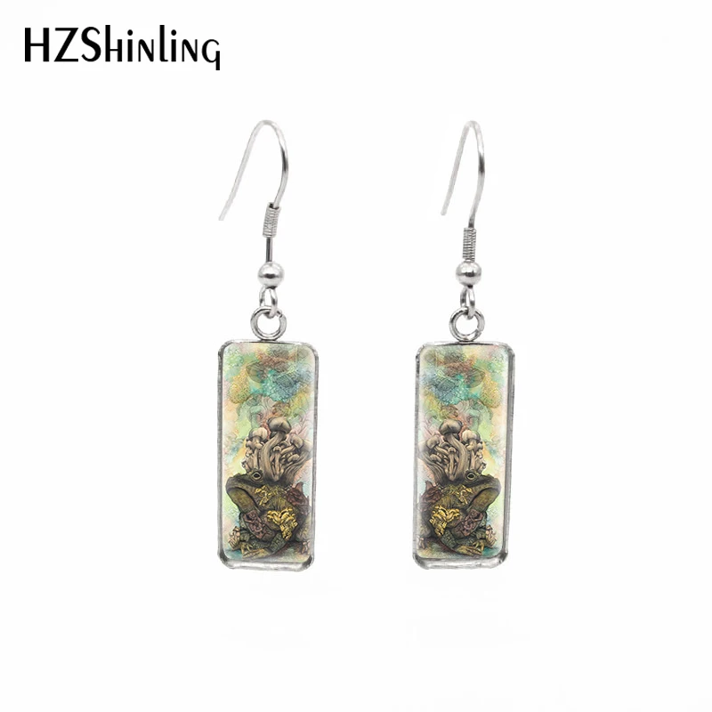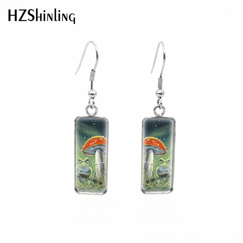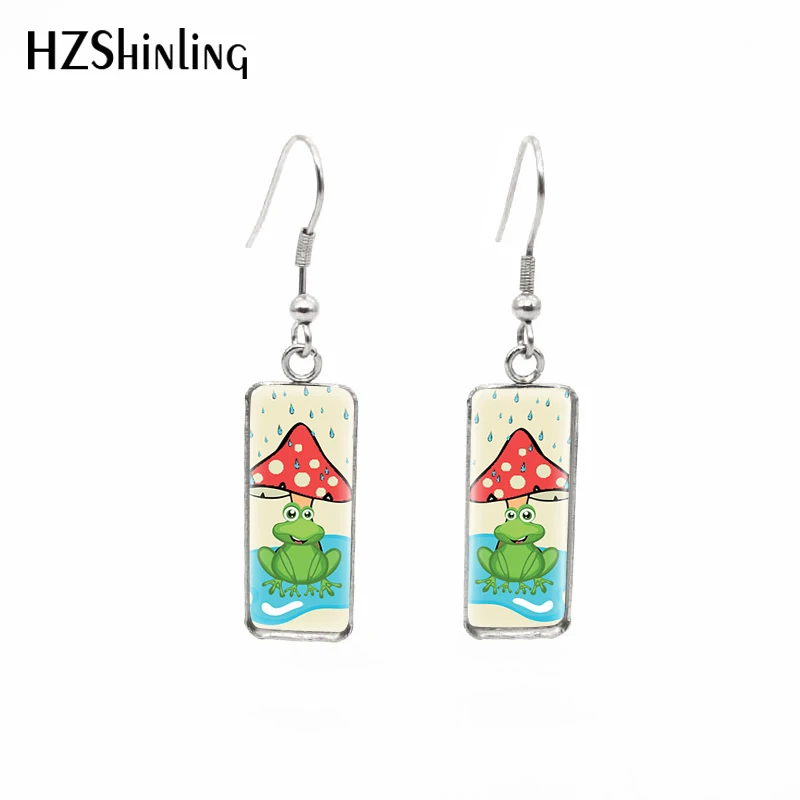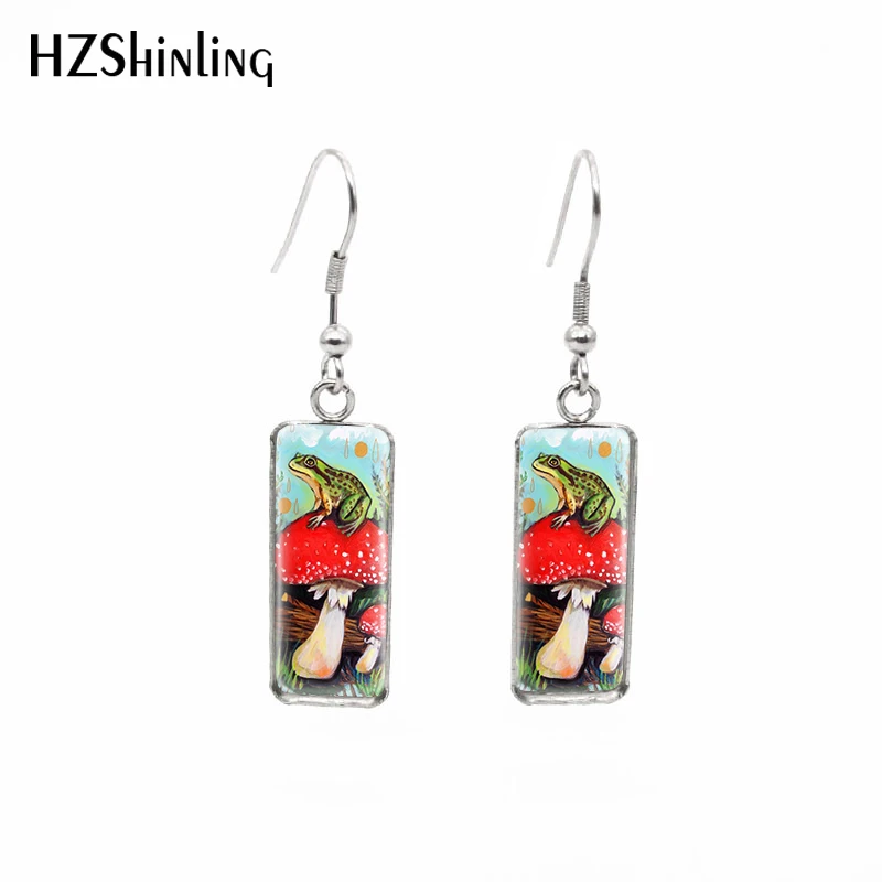 Новинка 2020, серьги в виде лягушки и гриба, Модные прямоугольные серьги с крючком, стеклянный купол, ювелирные изделия, подарки ручной работы