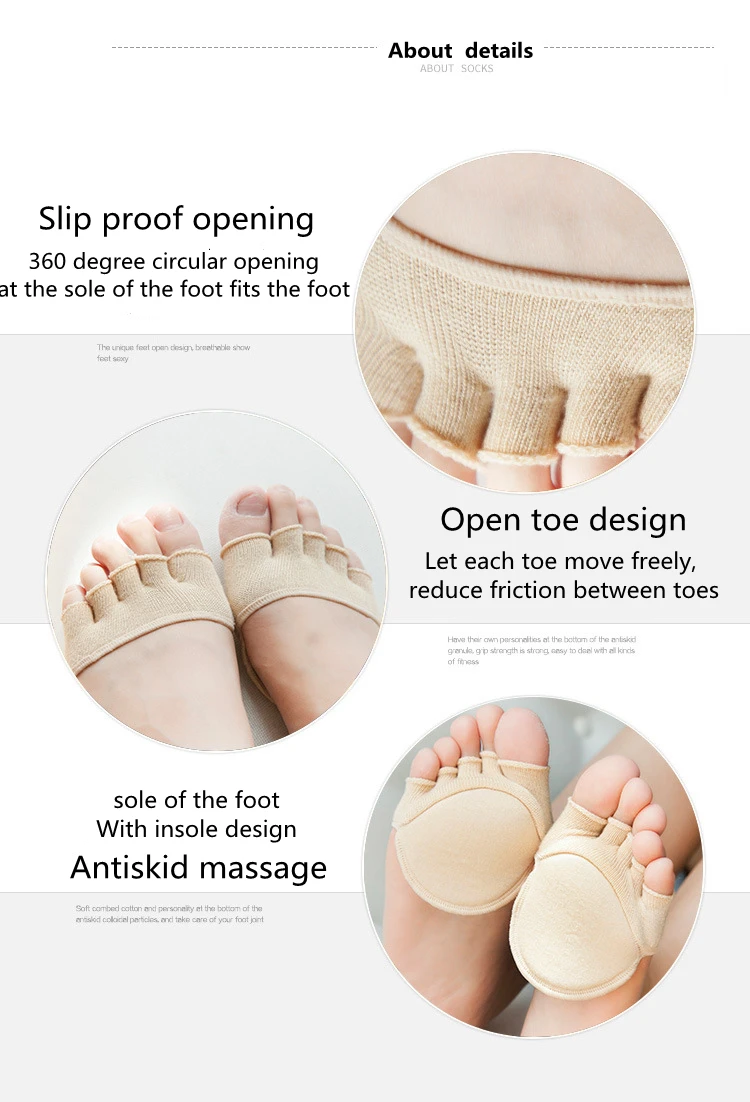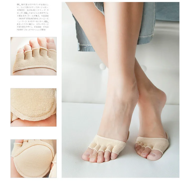 Женские носки, губчатая силиконовая подкладка, противоскользящая подкладка с открытым носком, подкладка из мягкой ткани, подушка для стопы, хлопковые носки