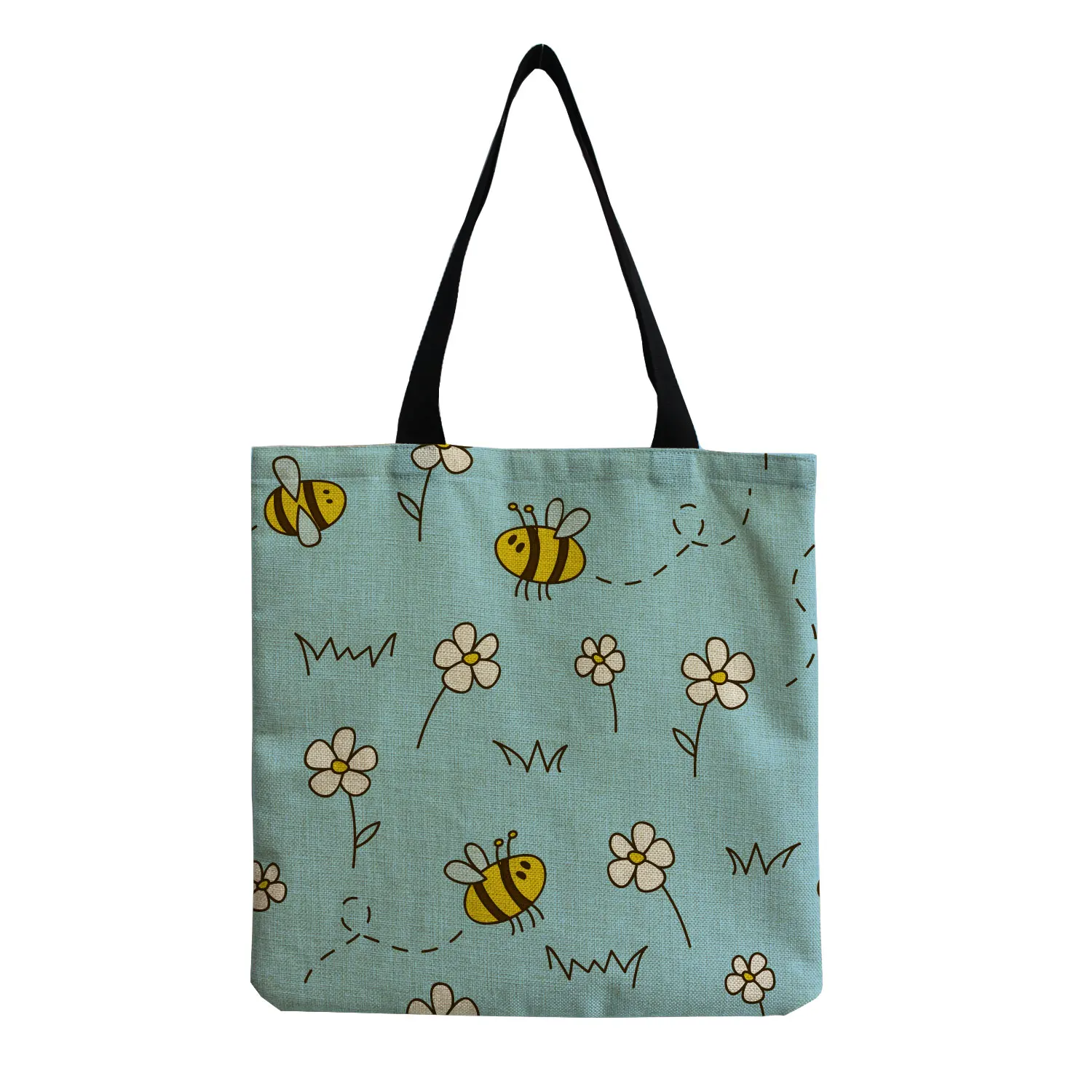 Повседневные сумки с милым мультяшным принтом пчелы, складные сумки через плечо, экологически чистые сумки для покупок с индивидуальным узором