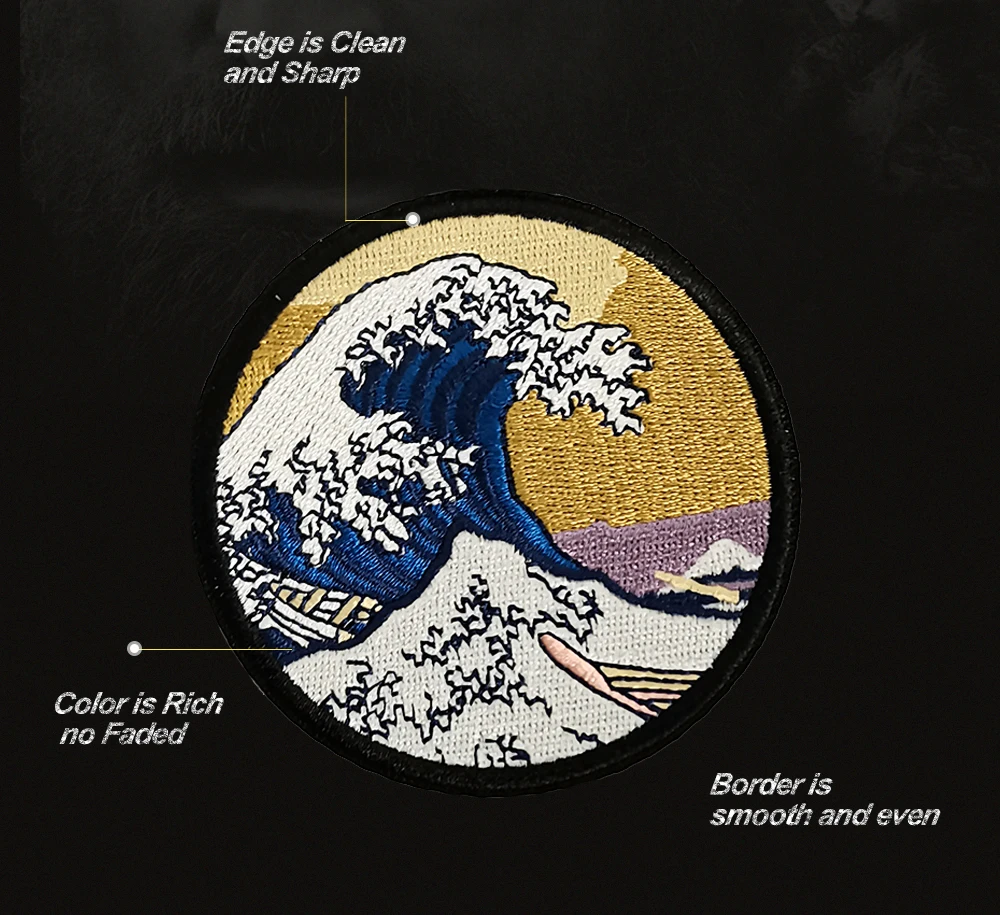 Размер: около 3 дюймов (7,62 см) Цвет: как на фотографии Стиль: Velcro /Iron-on Название продукта: нашивка с вышивкой для серфинга с сильной волной Посылка включает в себя: 10 пластырей Черная саржевая ткань с железом на подложке и 100% emb