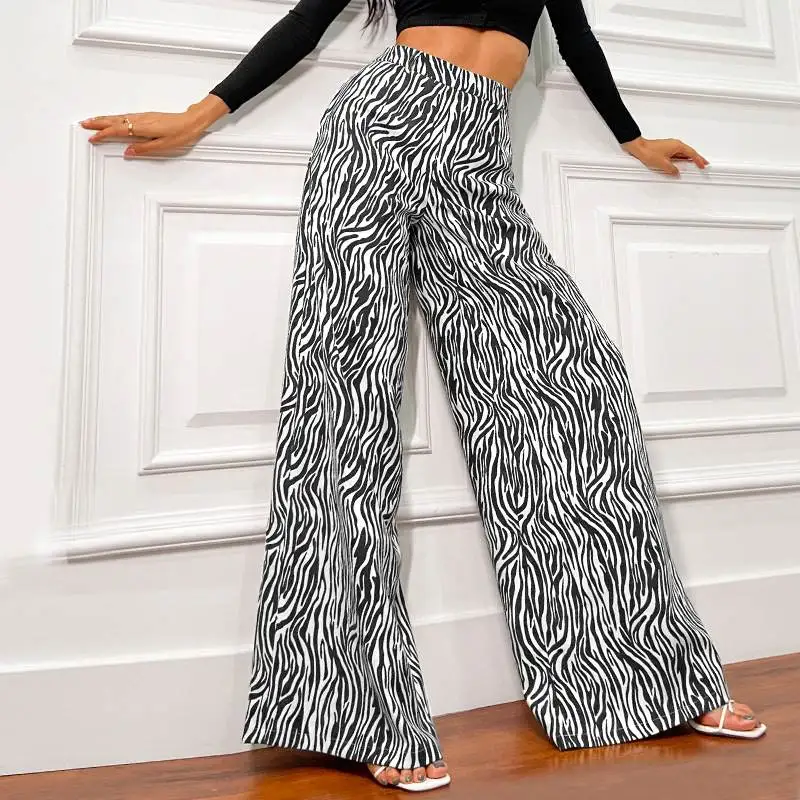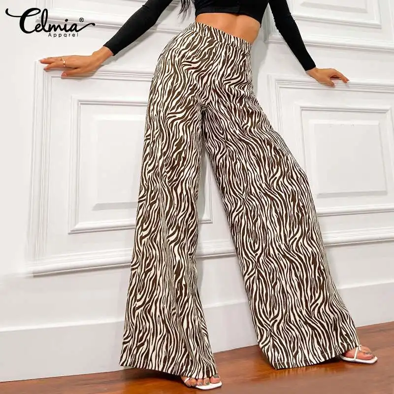 Осенние широкие брюки с высокой талией, женские винтажные брюки Celmia 2021, модные повседневные мешковатые брюки с принтом животных для работы для женщин 7