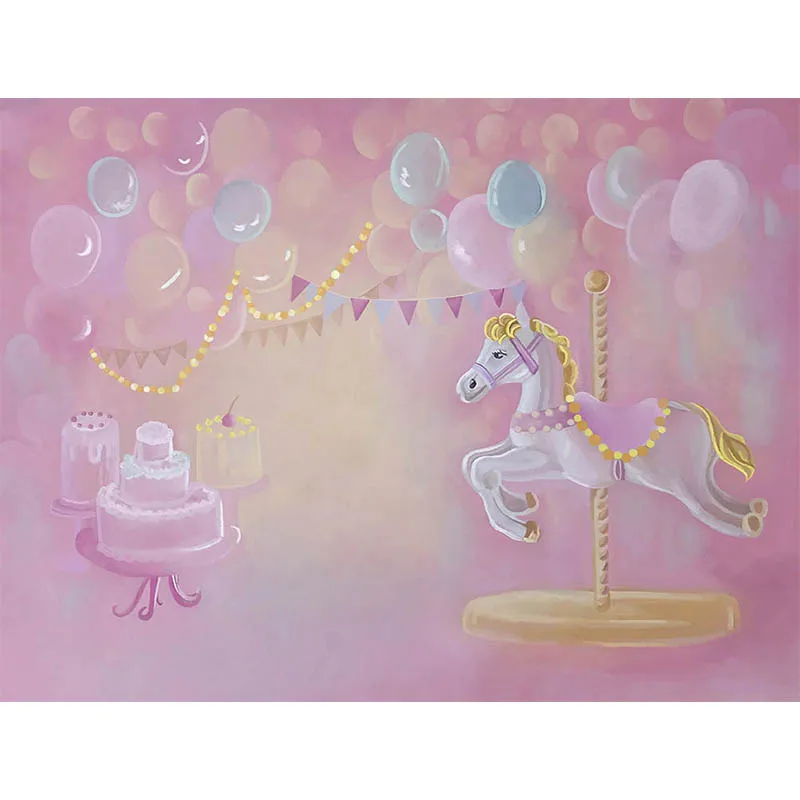 Виниловый фон для фотосъемки Avezano, день рождения, карусель, воздушный шар, розовый торт для девочек, декор для фотостудии