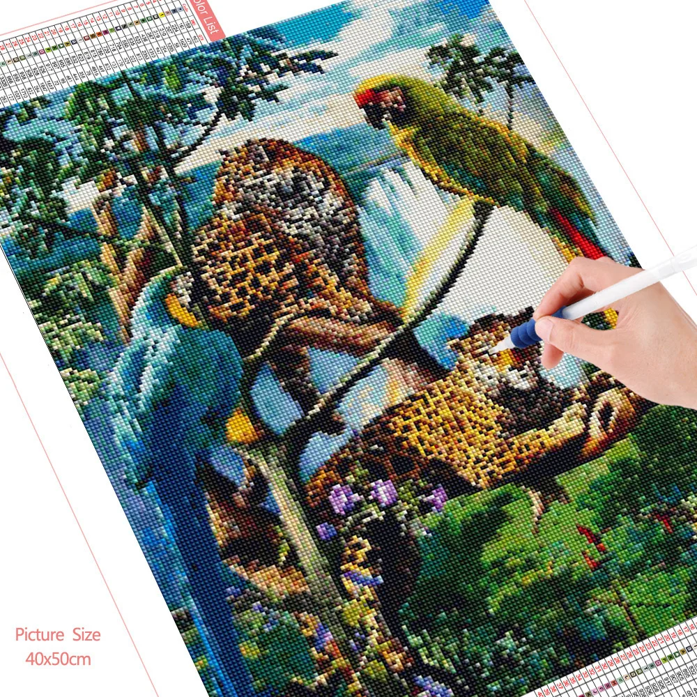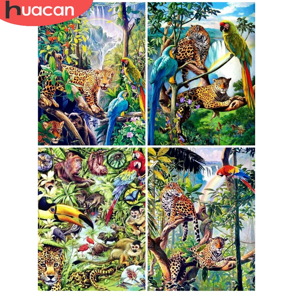 Алмазная живопись HUACAN с леопардовым рисунком, 5D алмазная вышивка, мозаика в виде попугая, наборы для вышивки крестиком подарок ручной работы