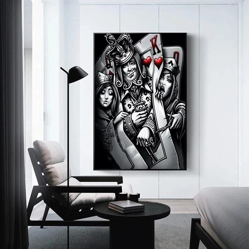 Черно-белые покерные персонажи, Картина на холсте, постеры в скандинавском стиле и печать, Настенная картина для гостиной, украшение для дома