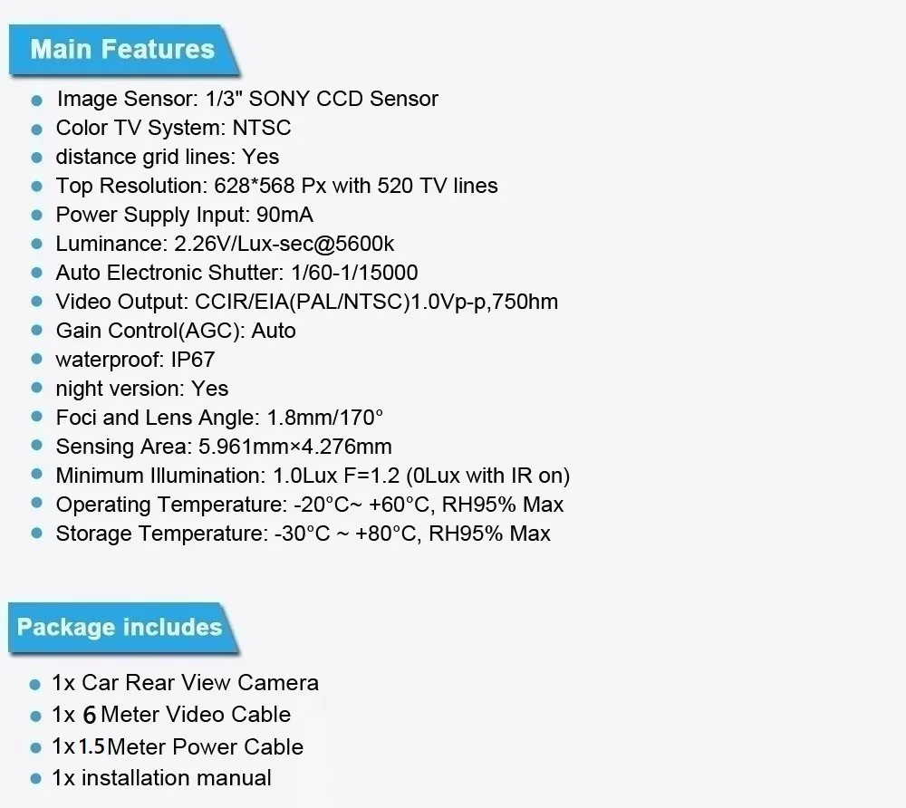 Тип сигнализацииВидеокамера заднего вида в автомобиле