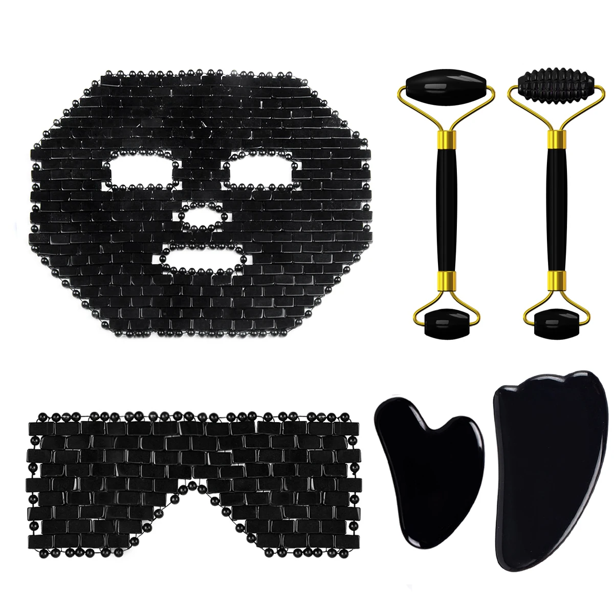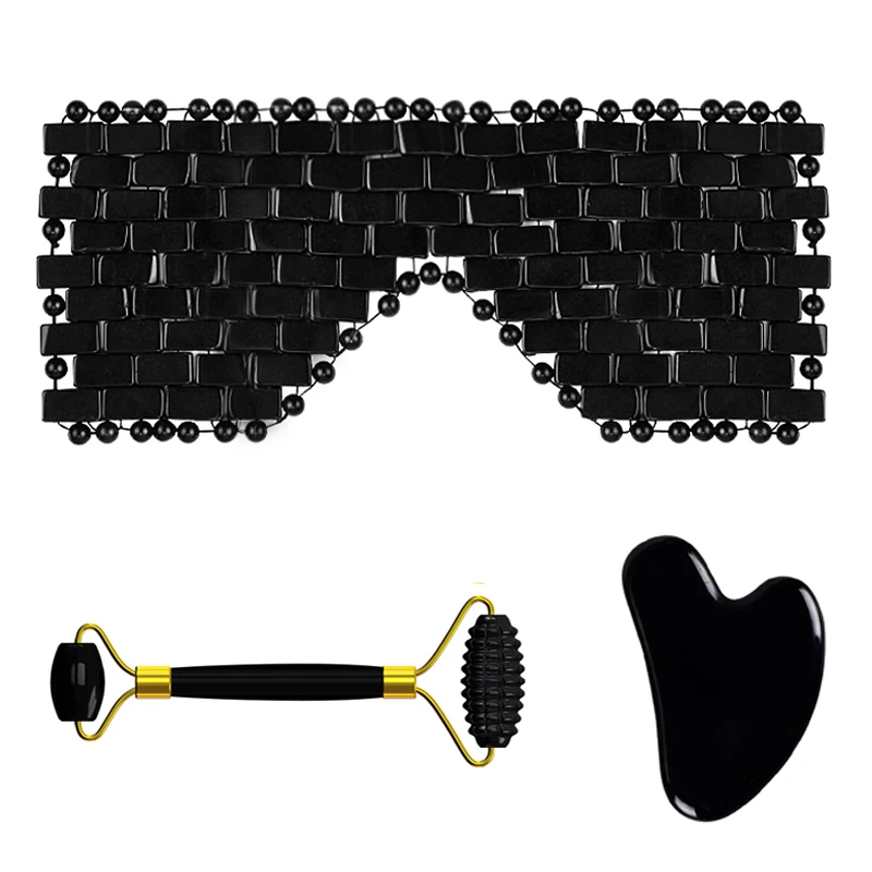 Нефритовая маска для глаз с обсидианом, скребок гуаша из ролик для массажа лица натурального камня, холодная терапия, маска для лица, массажер для лица, доска гуаша