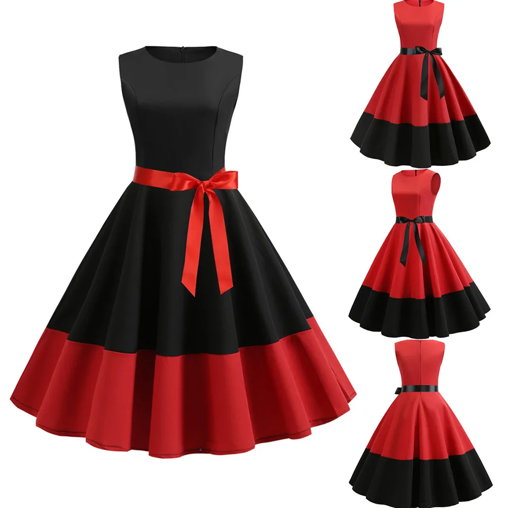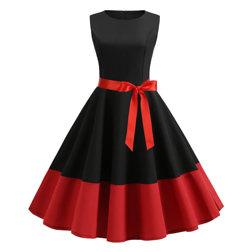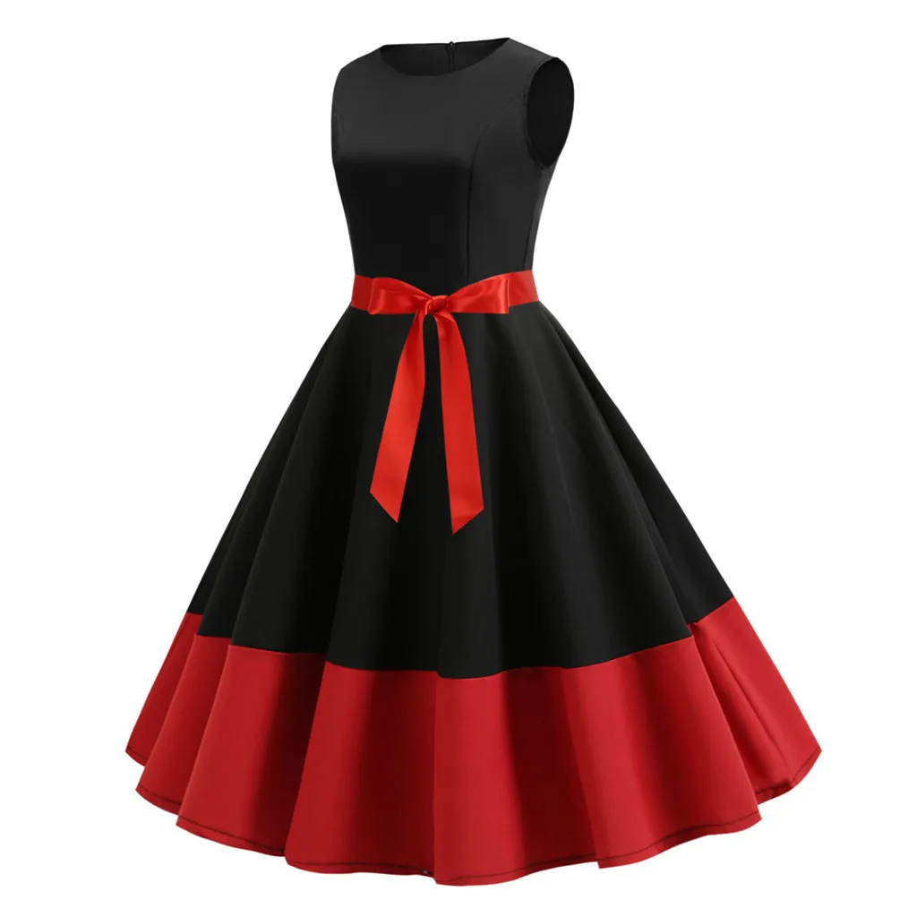 Для женщин Винтаж 1950s в ретро-стиле, без рукавов, из кусков, Вечеринка Выходные туфли на выпускной бал свободное платье