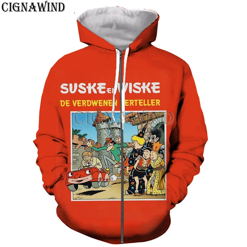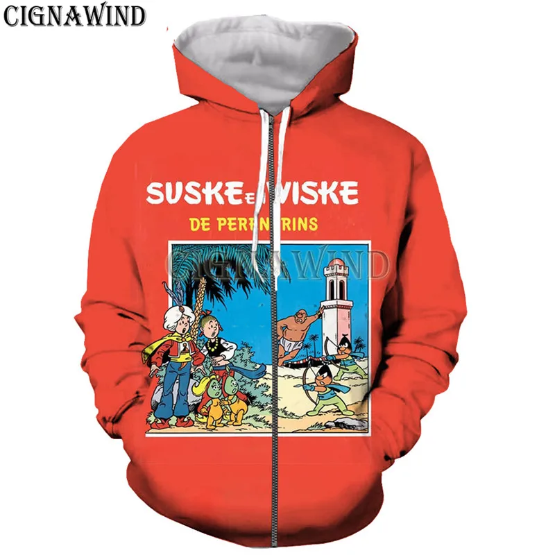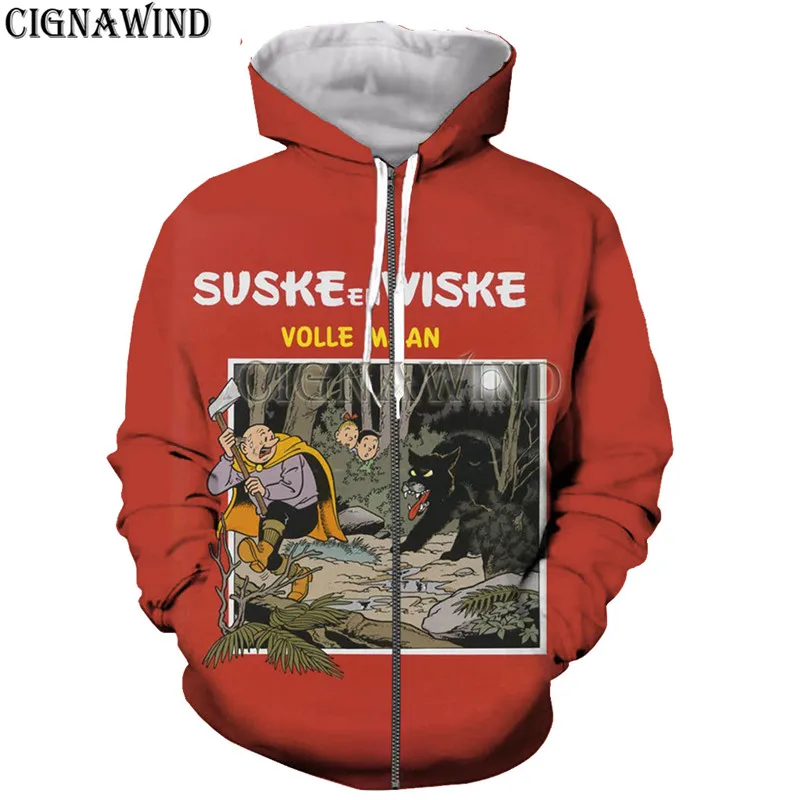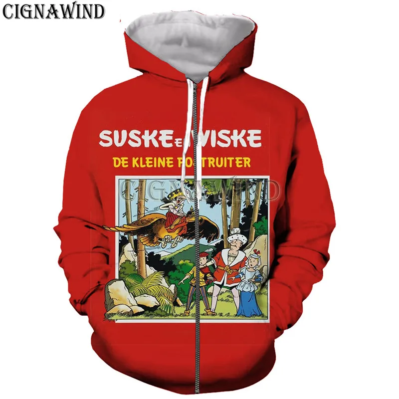 Новый дизайн толстовки на молнии для мужчин и женщин мультфильм Suske en Wiske 3D печатные толстовки на молнии в стиле Харадзюку топы на молнии