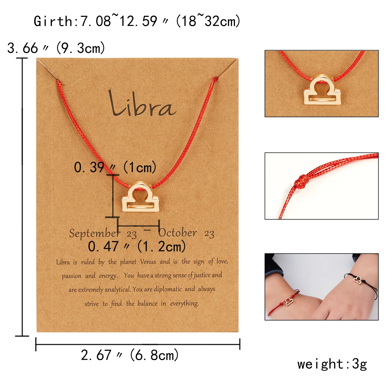 Регулируемый браслет Rinhoo, 12 созвездий зодиака, знаки браслеты, красный, черный