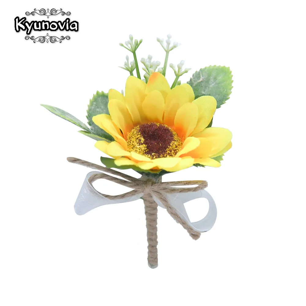 Свадебные аксессуары Kyunovia с отворотом подсолнуха Свадебные бутоньерки для Жениха Лучший Мужчина невесты корсаж BY63