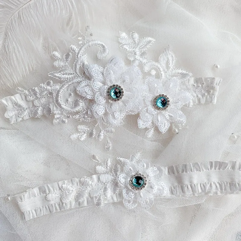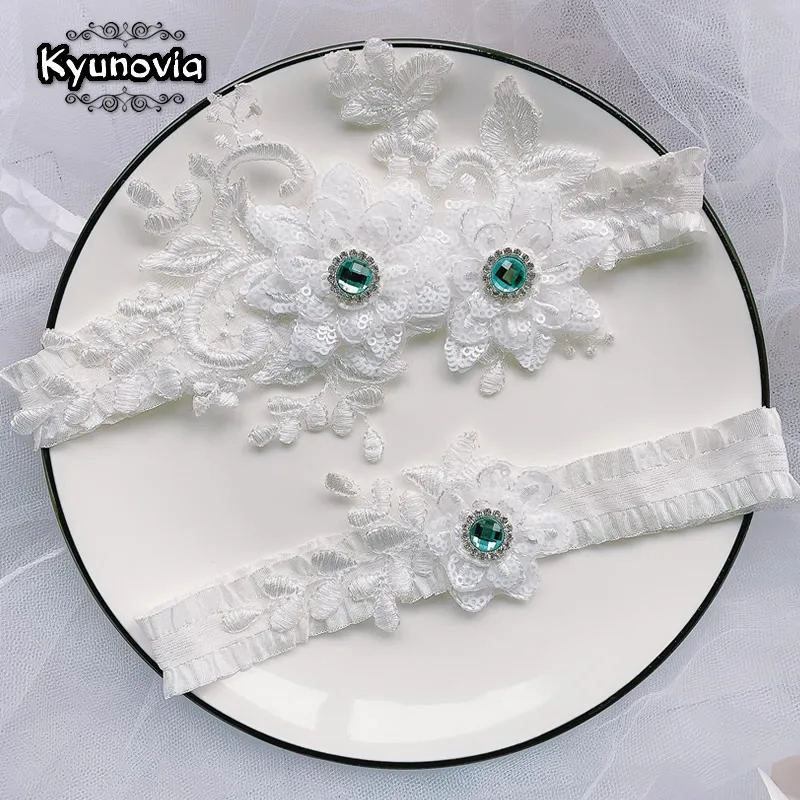 Kyunovia Сексуальная кружевная 2 шт./компл. Свадебная Кружевная подвязка с цветочной вышивкой сексуальные подвязки для женщин/невесты Бедро кольцо Свадебная подвязка BY29