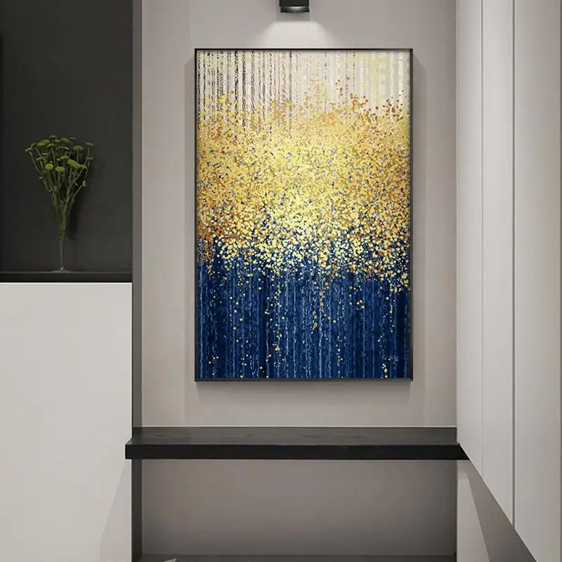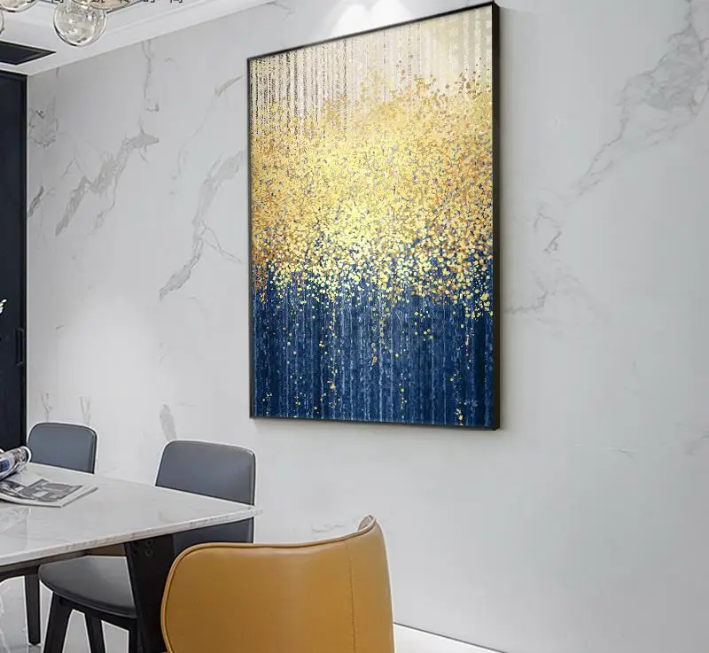 Абстрактная картина Hd яркая Золотая капля синий и серый холст Художественная живопись современный постер для интерьера гостиной нордический домашний декор