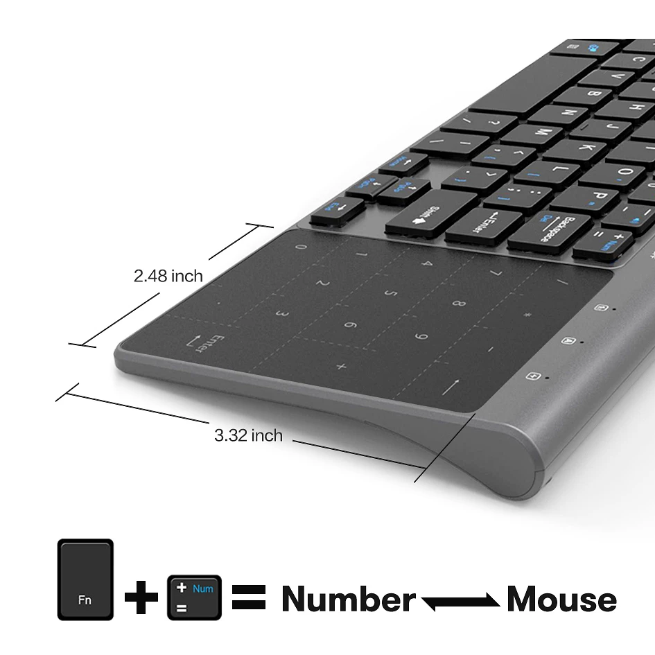 Feature 2keyboard with number touch pad