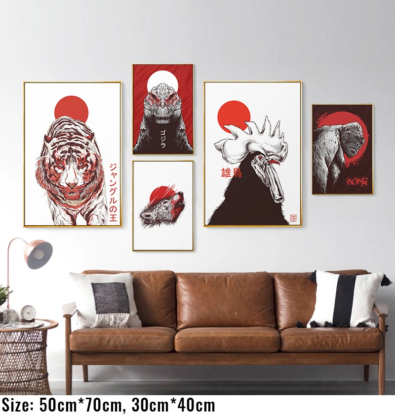 Японский стиль животное холст картина стены художественный постер Волк тигр орангутанг птица картина современный классический Декор для дома