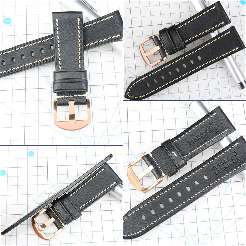 Ремешок для часов из натуральной кожи, 18202224 мм, черныйкоричневый