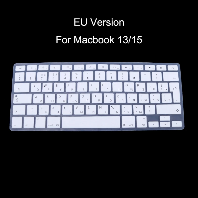 831D Версия США русская Клавиатура силиконовый чехол для Apple Macbook Air Pro 13 15Описание:Особенности:100% новый товар высокого качества.Высококачественная силиконовая защита от пыли, водонепроницаемая, маслостойкая защитная пленка.Введите кнопку возврата, английские буквы + русские алфавиты.Универсальный для Mac Для iMac ПК компьютер для Macbook 13/15 (не для волшебной Bluetooth-совместимой клавиатуры, не для Macbook 11 12 дюймов, не для Dell Asus других брендов ноутбуков).Мягкая Высококачественная Прочная кожа обеспечивает легкую посадку и отсутствие шума.Гибкий силиконовый чехол защищает клавиатуру от пыли, грязи и разливов.Его можно мыть теплой водой.Характеристики:Тип товара: защитный чехол для клавиатурыМатериал: силиконЦвет: черный/белый/серебристый/белый + синий/желтый/фиолетовый/зеленый/прозрачный (по желанию)(В дополнение к прозрачному стилю, чехол для клавиатуры других цветов для России)Размер: идеально подходит для Apple Macbook AIR pro 13/15Версия: Версия СШАКоличество: 1 шт. (другие демонстрационные аксессуары на картинке не включены)Примечание:1. Перевод ед. измерения: 1 см = 10 мм = 0,39 дюймов2. Допускается погрешность в 0-1 см из-за ручного измерения. Пожалуйста, убедитесь, что вы не возражаете, прежде чем сделать ставку.3. Из-за разницы между различными мониторами изображение может не отражать фактический цвет изделия. Спасибо!4. Нет розничной упаковкиПосылка включает в себя:Чехол для клавиатуры версии США-1 шт.