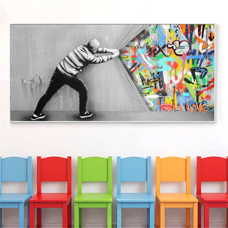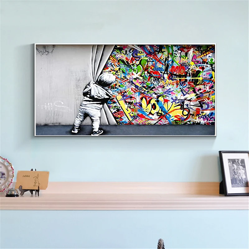 Граффити Бэнкси, искусство за занавеской, картины на холсте, постер...