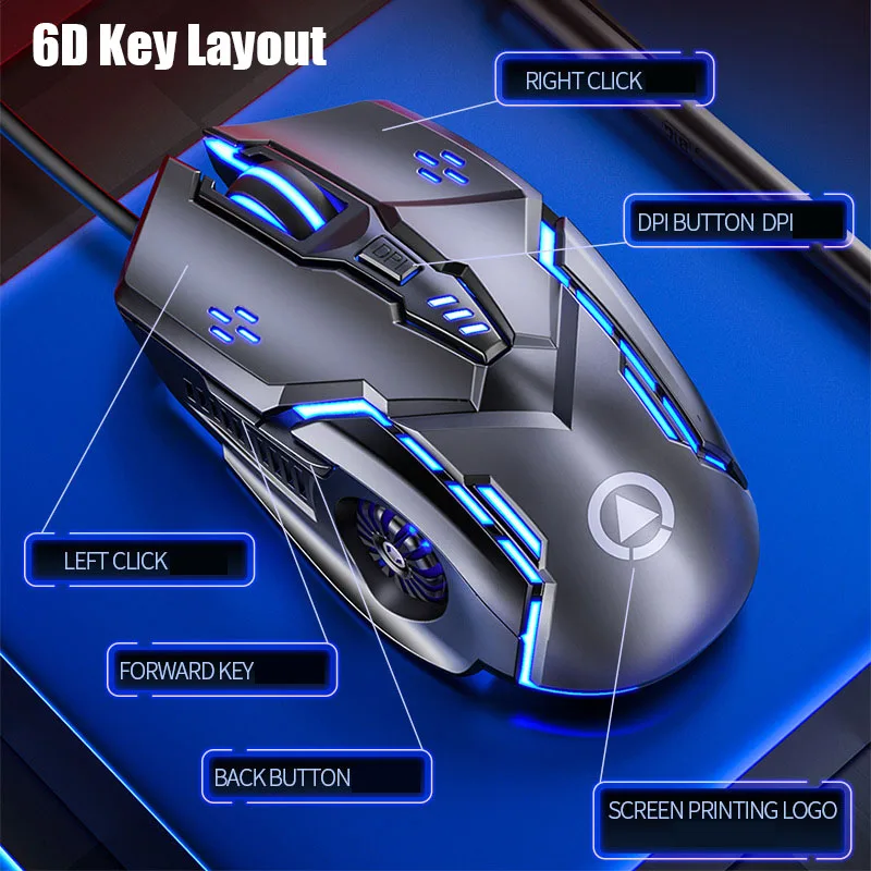 Мышь Компьютерная Проводная, эргономичная, 5500 DPI, 6 кнопок, со светодиодной подсветкой
