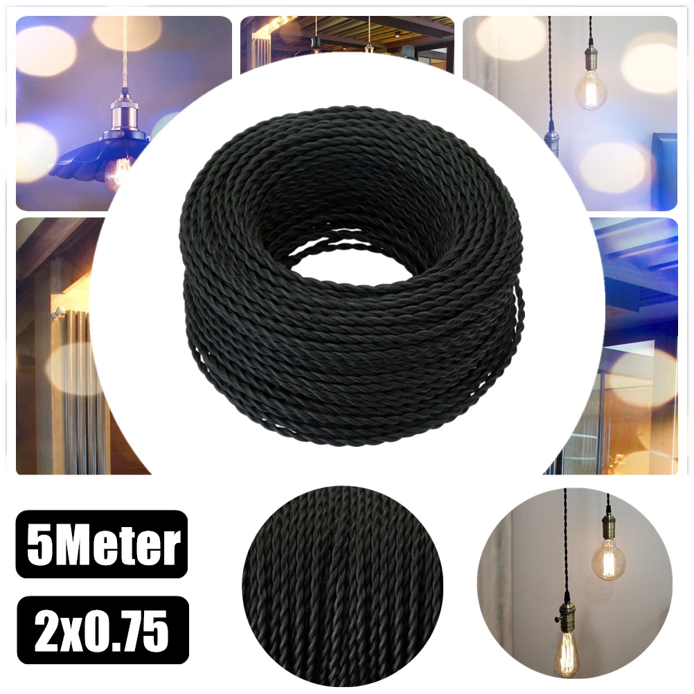 Электрический кабель, черный, 5, 10, 20 м, 2-жильный, винтажный, в ...