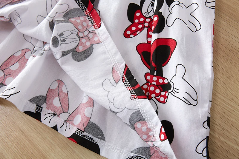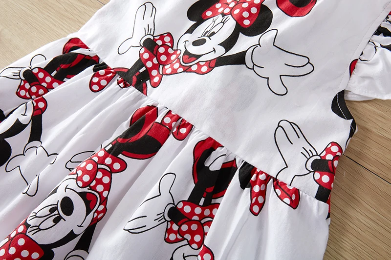 Одежда для маленьких девочек, летнее платье с летящим рукавом, платье для новорожденных, Хлопковое платье с Минни + повязка на голову для маленьких девочек, платье для малышей