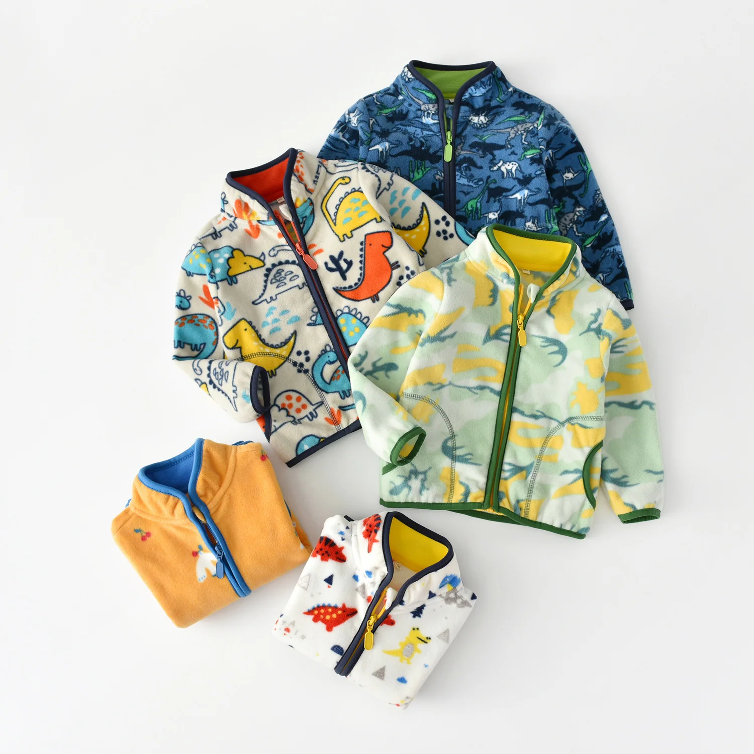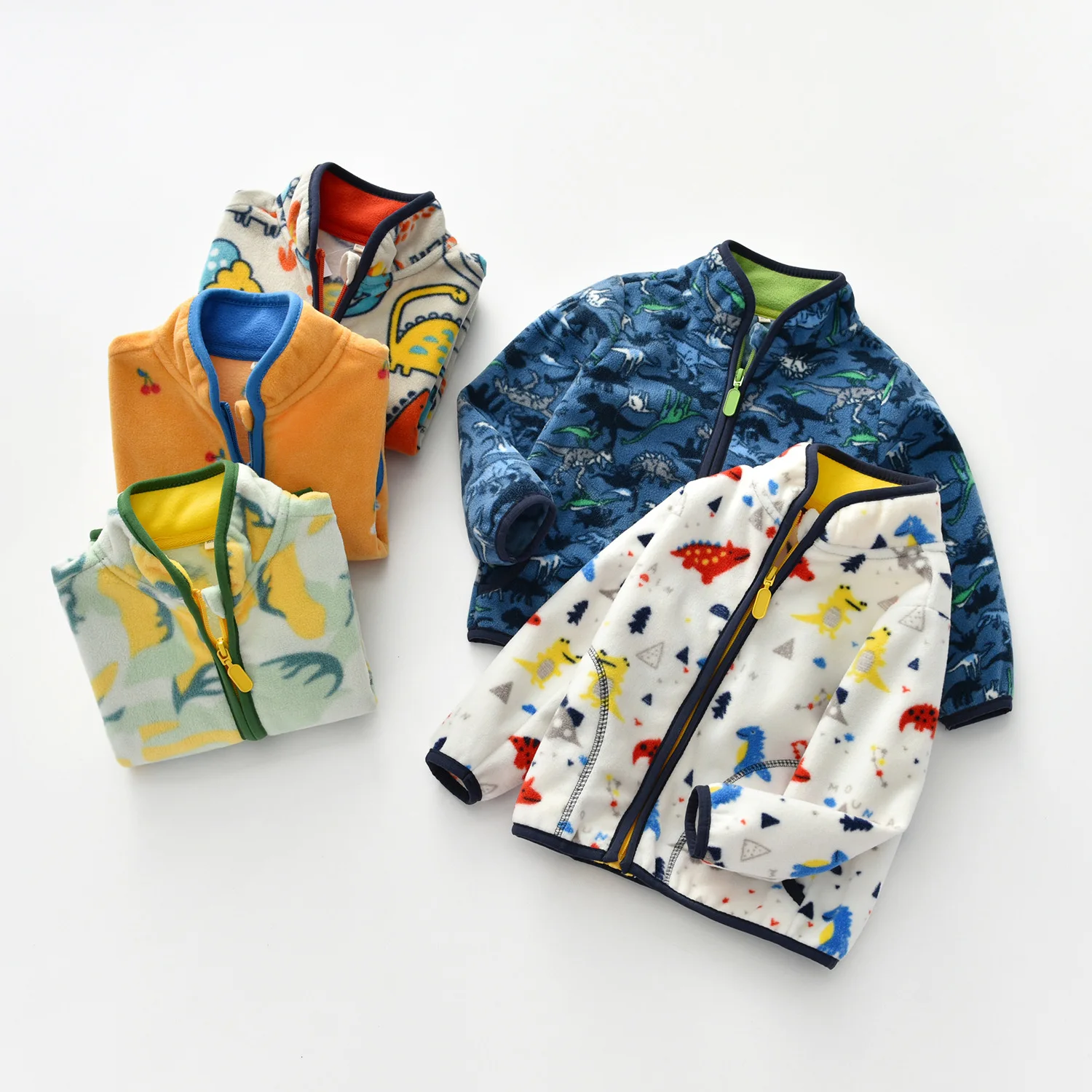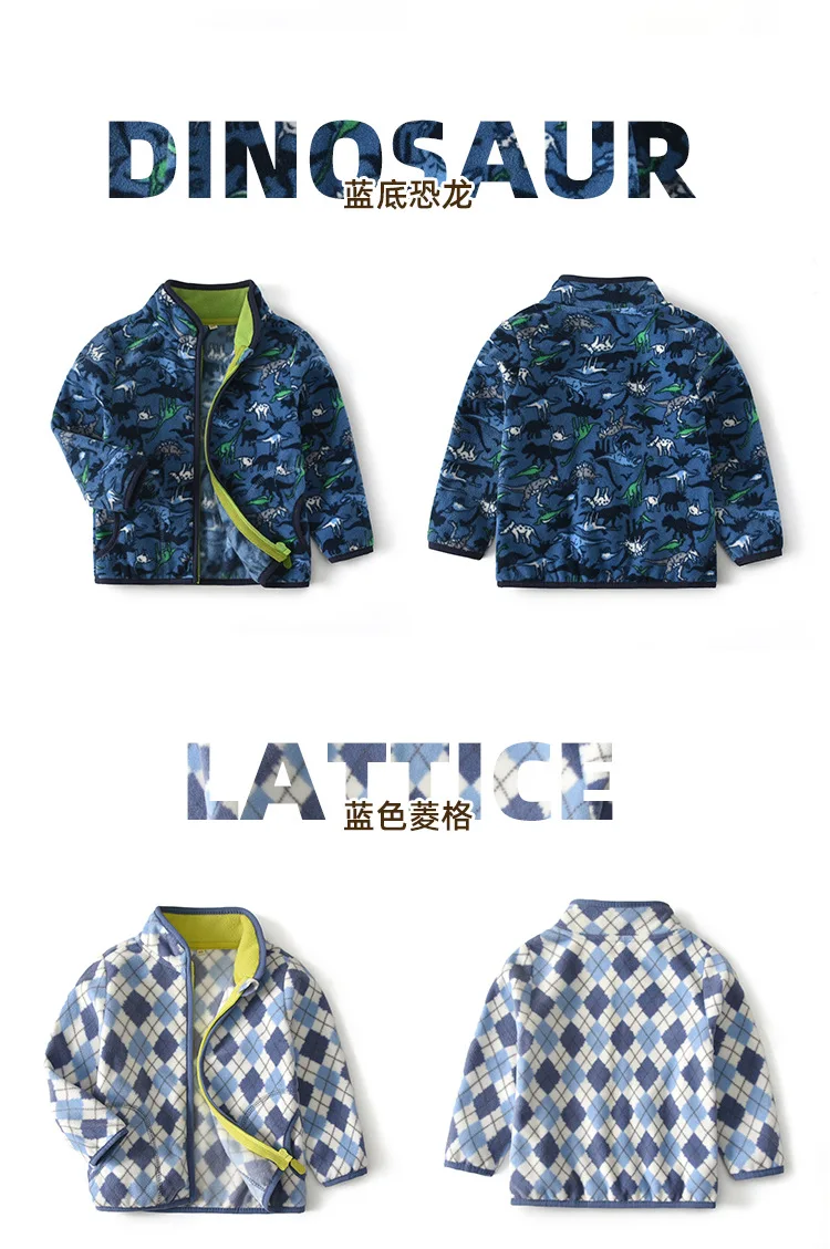 Детское пальто От 2 до 8 лет пальто из флиса; Сезон весна-осень; Высокий воротник жакет на молнии Одежда с динозаврами для мальчиков детская куртка одежда для маленьких девочек