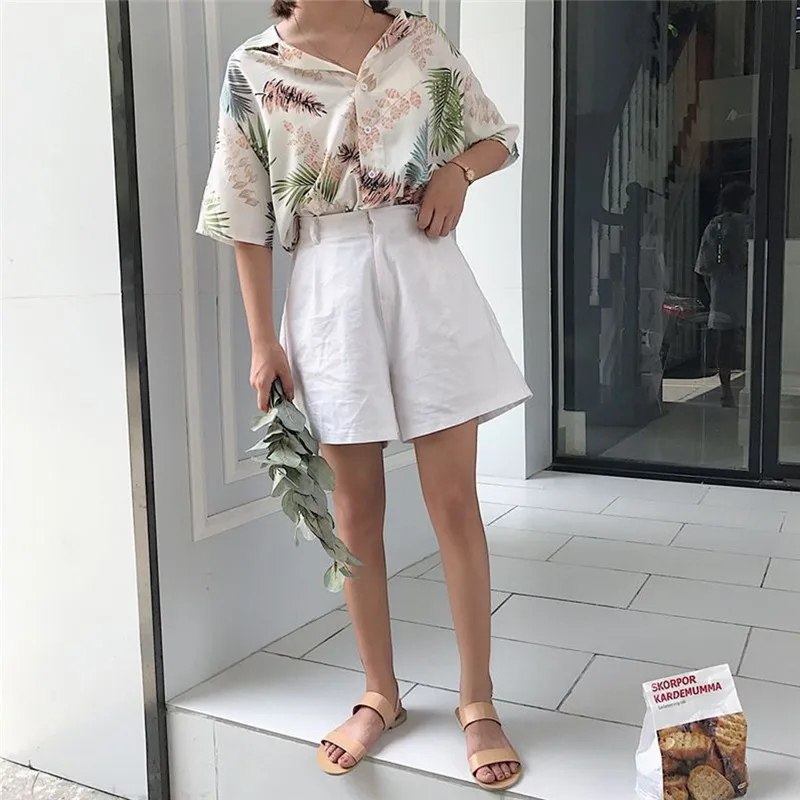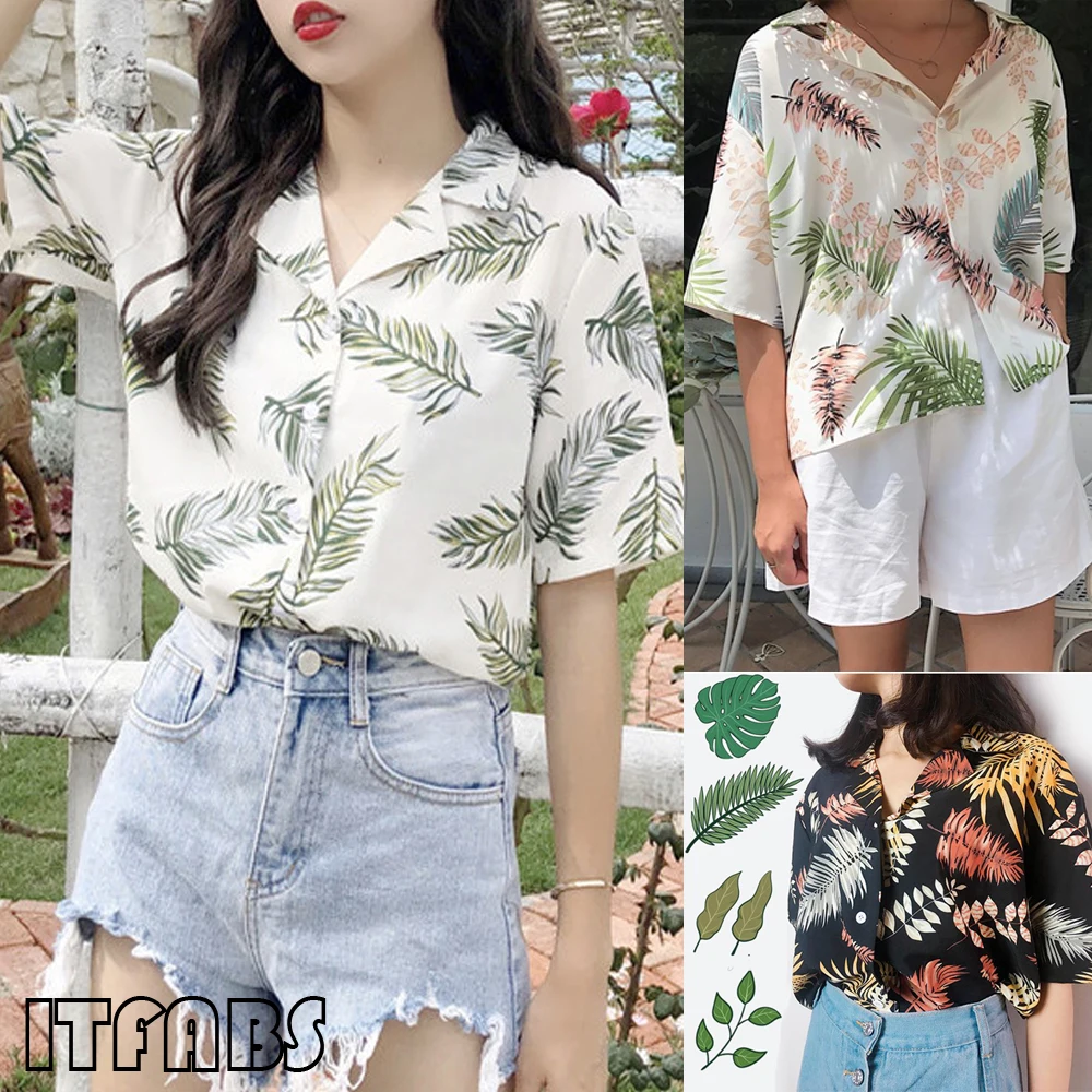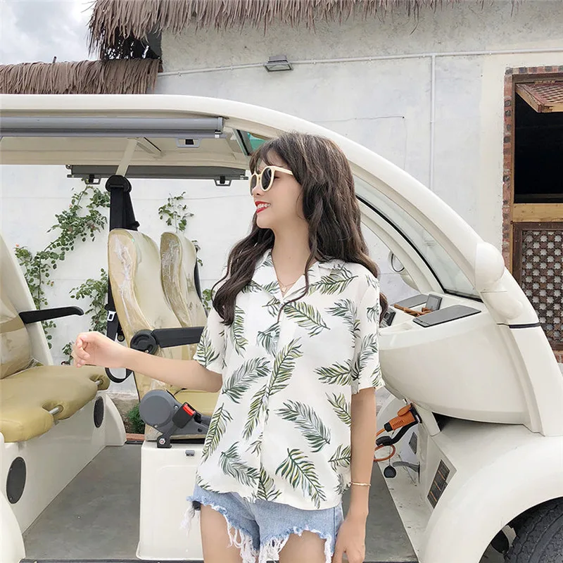 Женская летняя обувь для отдыха Повседневная рубашка в гавайском стиле с цветочным принтом свободного кроя с коротким рукавом, рубашки с отложным воротником для детей шифоновая блузка один размер