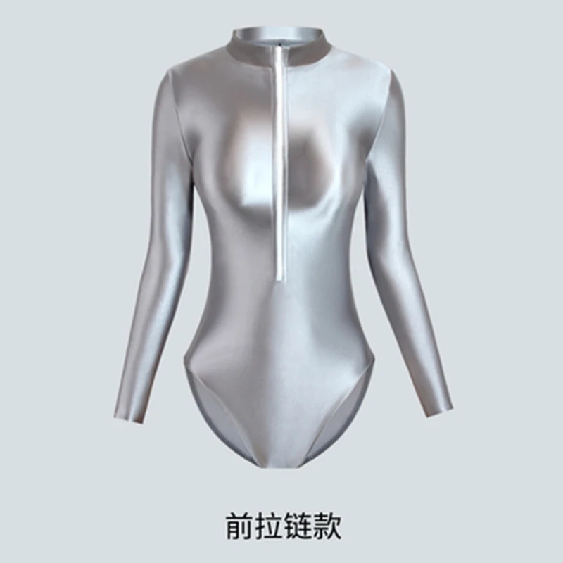 Слитный купальник DROZENO из блестящего спандекса с длинным рукавом...