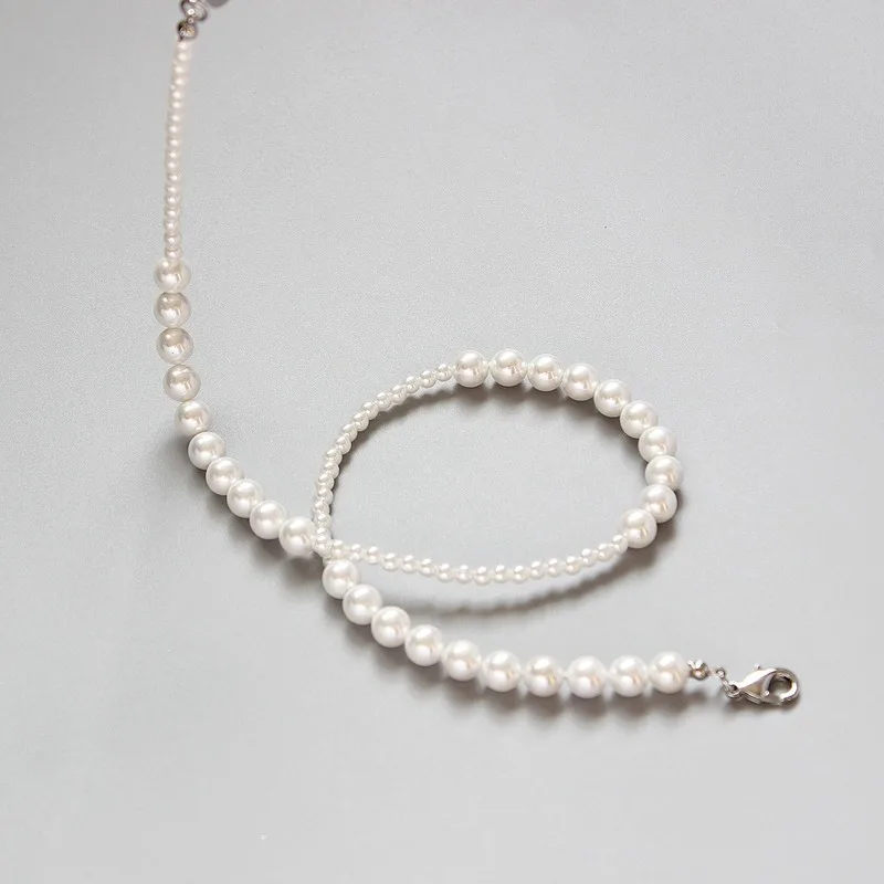 Женское геометрическое ожерелье из белого жемчуга, большое и маленькое жемчужное ожерелье ручной работы из бисера