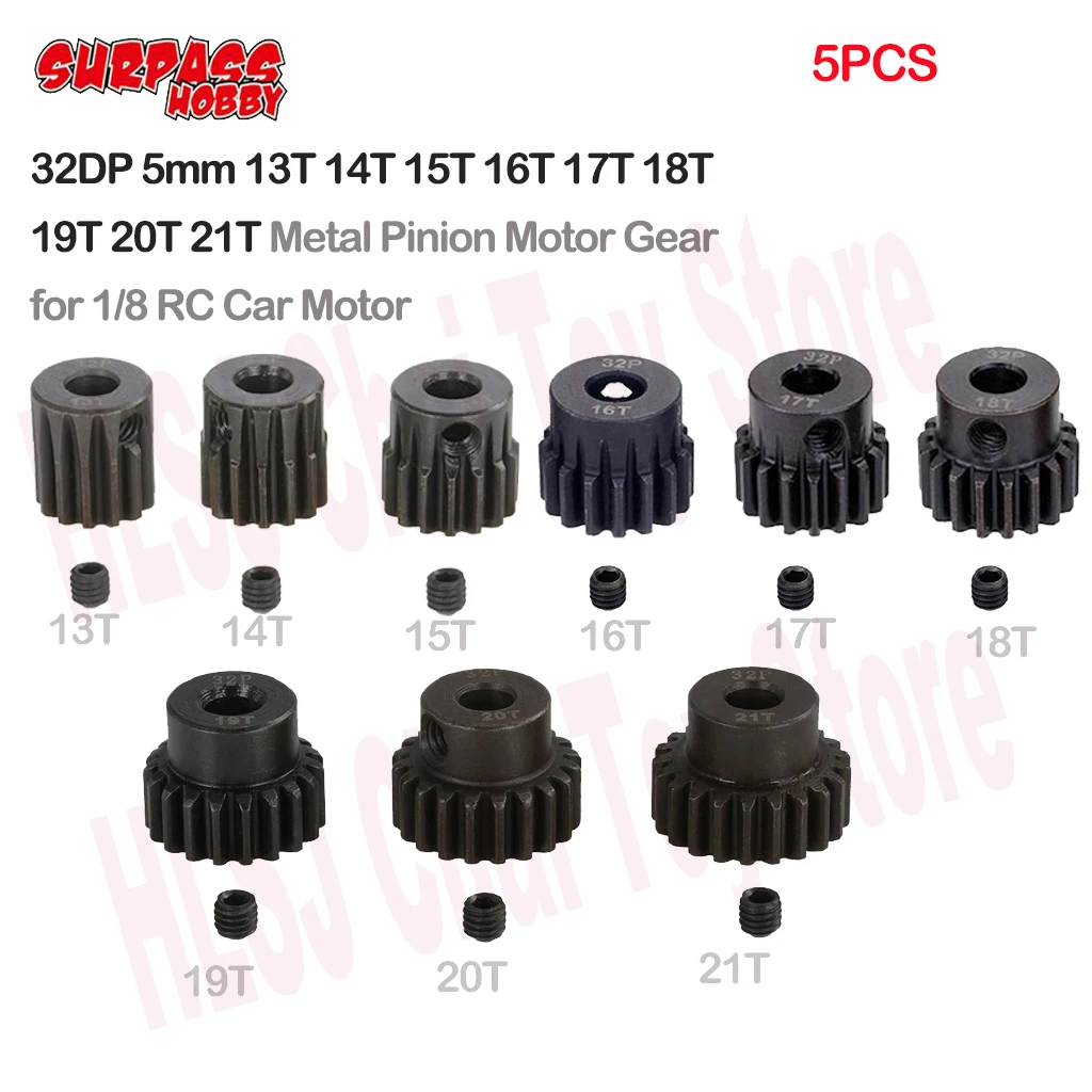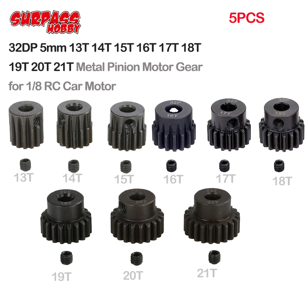 5 шт. SURPASS HOBBY 32DP 5 мм 13T 14T 15T 16T 17T 18T 19T 20T 21T Металлическая Шестерня двигателя для Traxxas Redcat Tamiya 1/8 RC Monster внедорожник