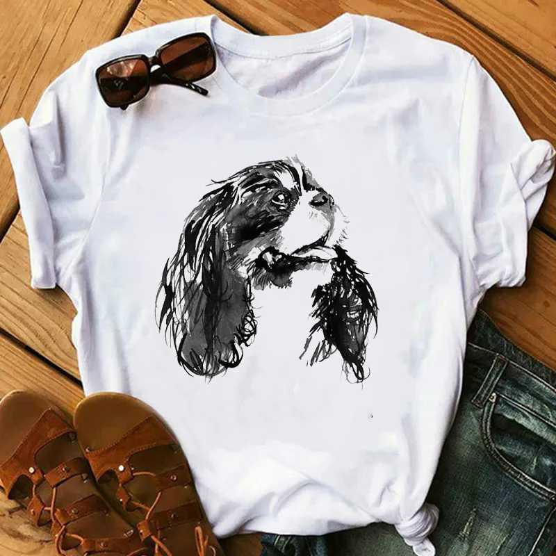 Футболка женская Harajuku kawaii, с принтом кавалеров, Кинг, Чарльз...