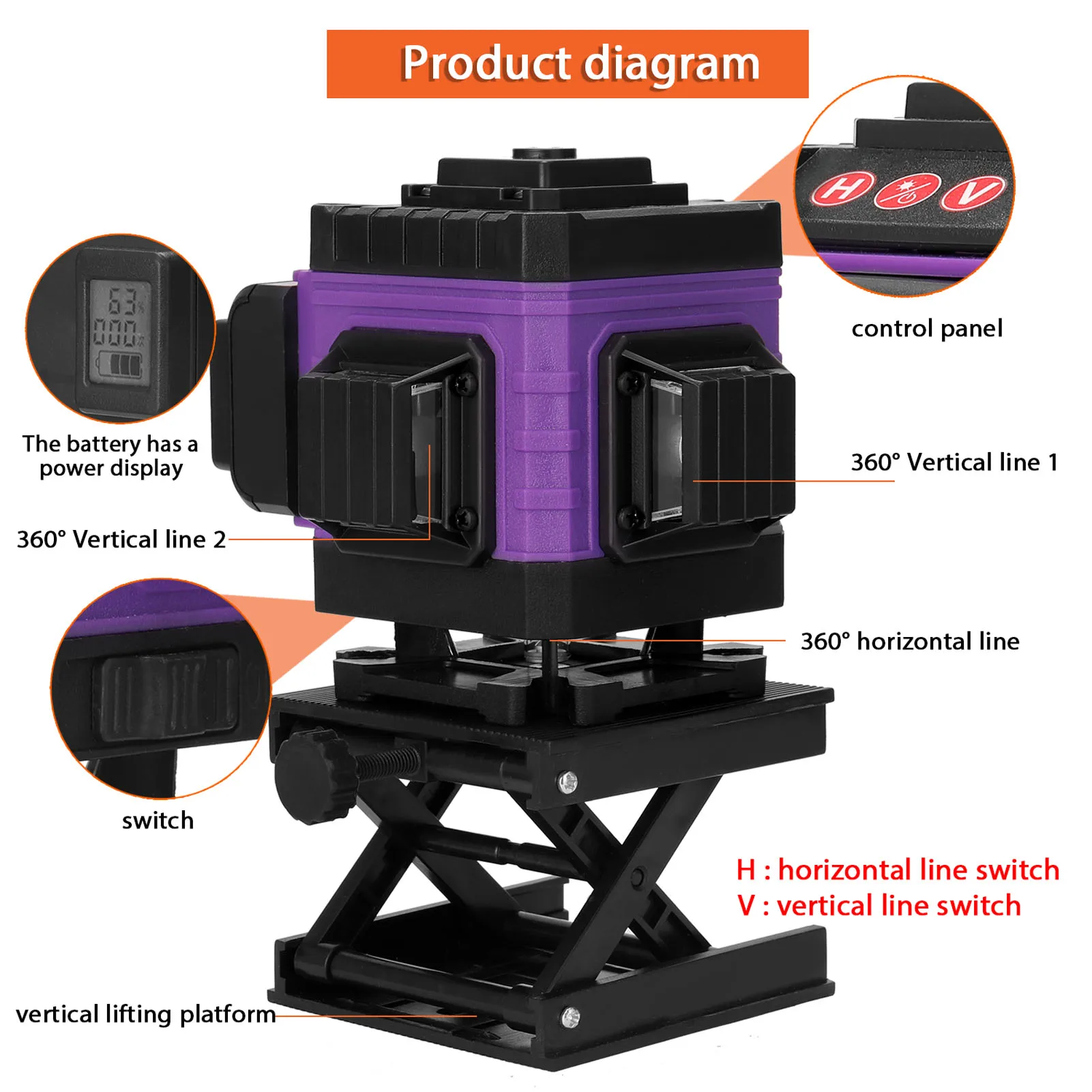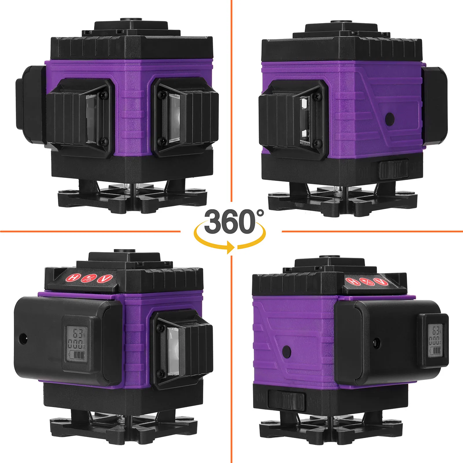 Характеристики:Название: лазерный уровеньОсновной материал: пластик + металл1*3,7 V, 3000mAh батарея(В комплекте, вы обнаружите, что внутри есть две батареи 18650, если разобрать их)Лазерный луч: 360 ° * 4, 16 линий (40)Длина волны: Зеленый светильник 532 нмГоризонтальная и вертикальная точность: ± 0,2 мм/10mСамонивелирующийся диапазон: ± 3 °Класс водонепроницаемости: IP54Рабочий диапазон: около 25 м в диаметреВремя работы: около 5 часовЗеленый светильник Рабочая температура: от-5 ℃ до 50 ℃Размер машины уровня: 103*114*121 мм/4,06*4,49 * 4.76inРазмер сумки: 220*135*160 мм/8,66*5,31*6,30 дюймовВес изделия: 1376 г/3,03 фунтаРазмер посылка: 210*160*250 мм/8,27*6,30 * 9.84inПосылка Вес: 1562 г/3.44lbУпаковочный лист:1 * уровневая машина1 * подъемная платформа1 * Мини-пульт дистанционного управления1 * Настенный кронштейн1 * зажим1 * железная доска1*1/4 "до 5/8" адаптер1 * кабель питания1 * сумка для переноски1 * Руководство пользователя
