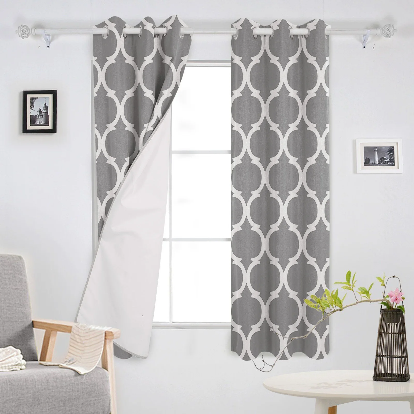 Занавески на окна, серые, с геометрическим узором в марокканском стиле, домашний декор, шторы для гостиной, кухни, занавески, шторы для спальни