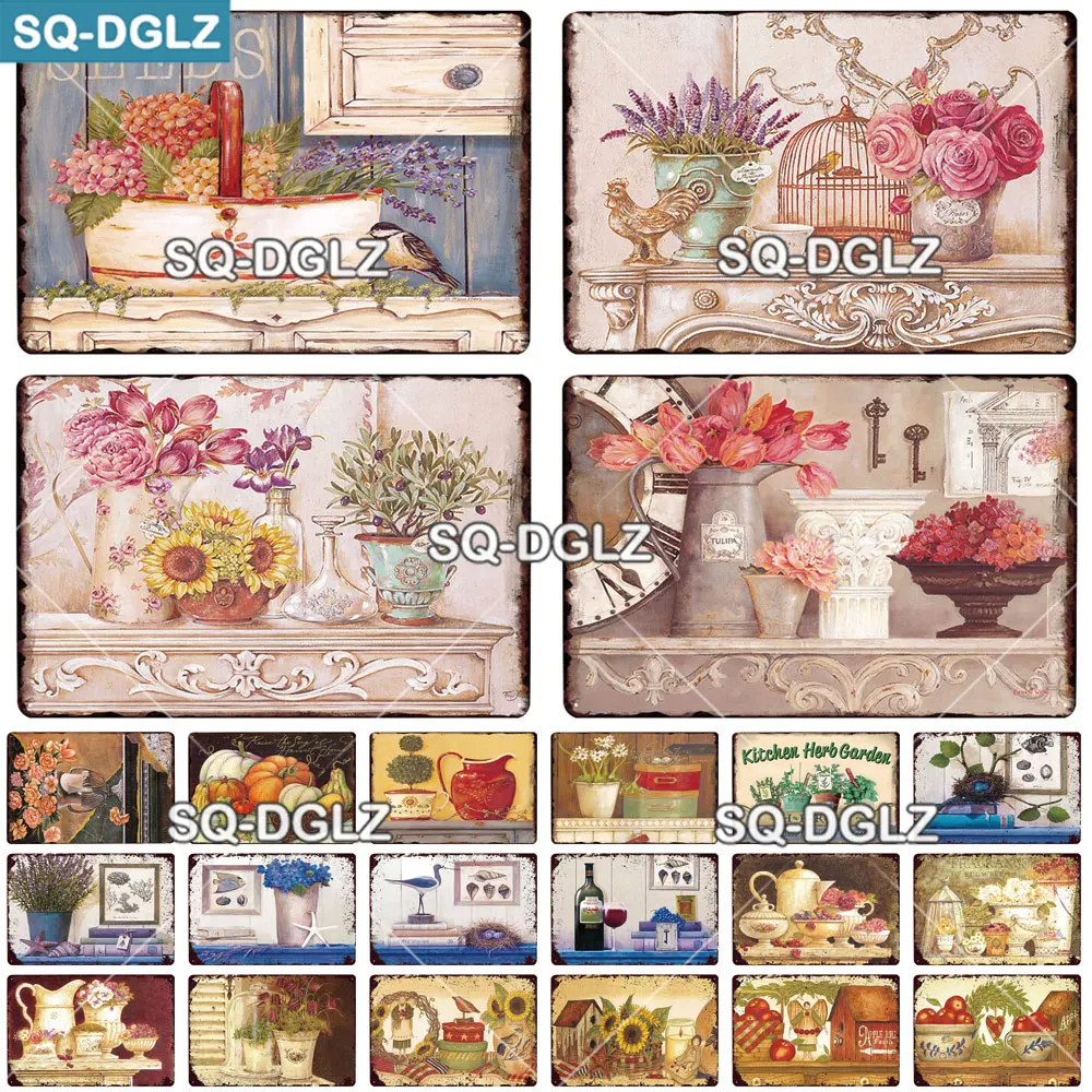 Металлический постер с цветами, винтажная металлическая табличка, жестяная вывеска, настенное украшение для сарая, кухни, гаража, железная живопись