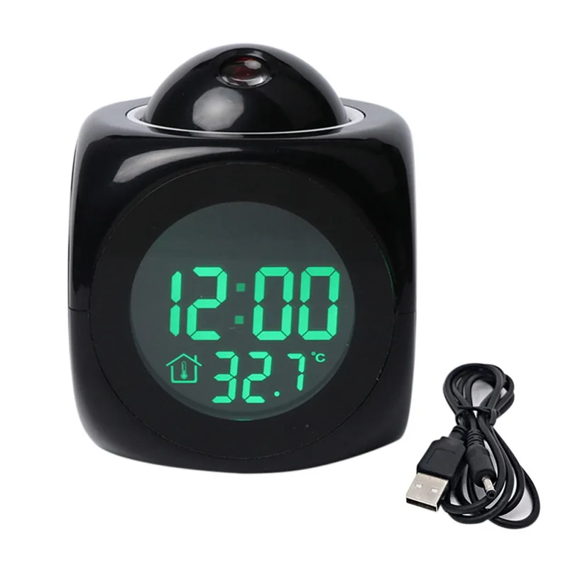 Особенности:1. Часовой сигнал, автоматический сигнал.2. Регулируемый Поворотный проектор.3. Функция разговора объявляет время.4. Светодиодный дисплей времени и температуры.5. Сигнал тревоги и 10 минут повтора Функция.6. Классический дизайн купольной формы с автоматическим проекционным фокусом7. Низкое энергопотребление, экологичность, компактный и легкий вес.8. Многофункциональность: функции ночника, проектора и будильника вместе.9. Голос передает текущее время и автоматически определяет температуру в реальном времениВыполняет основные функции часов, показывая время, температуру и пробуждая вас утром.