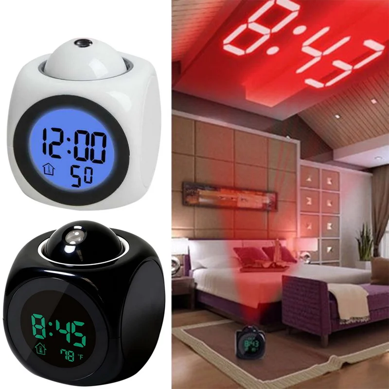 Часы с проекционным будильником, большой дисплей, дата, 2021, цифровые, с Цветной подсветкой, настольные часы, проектор температуры