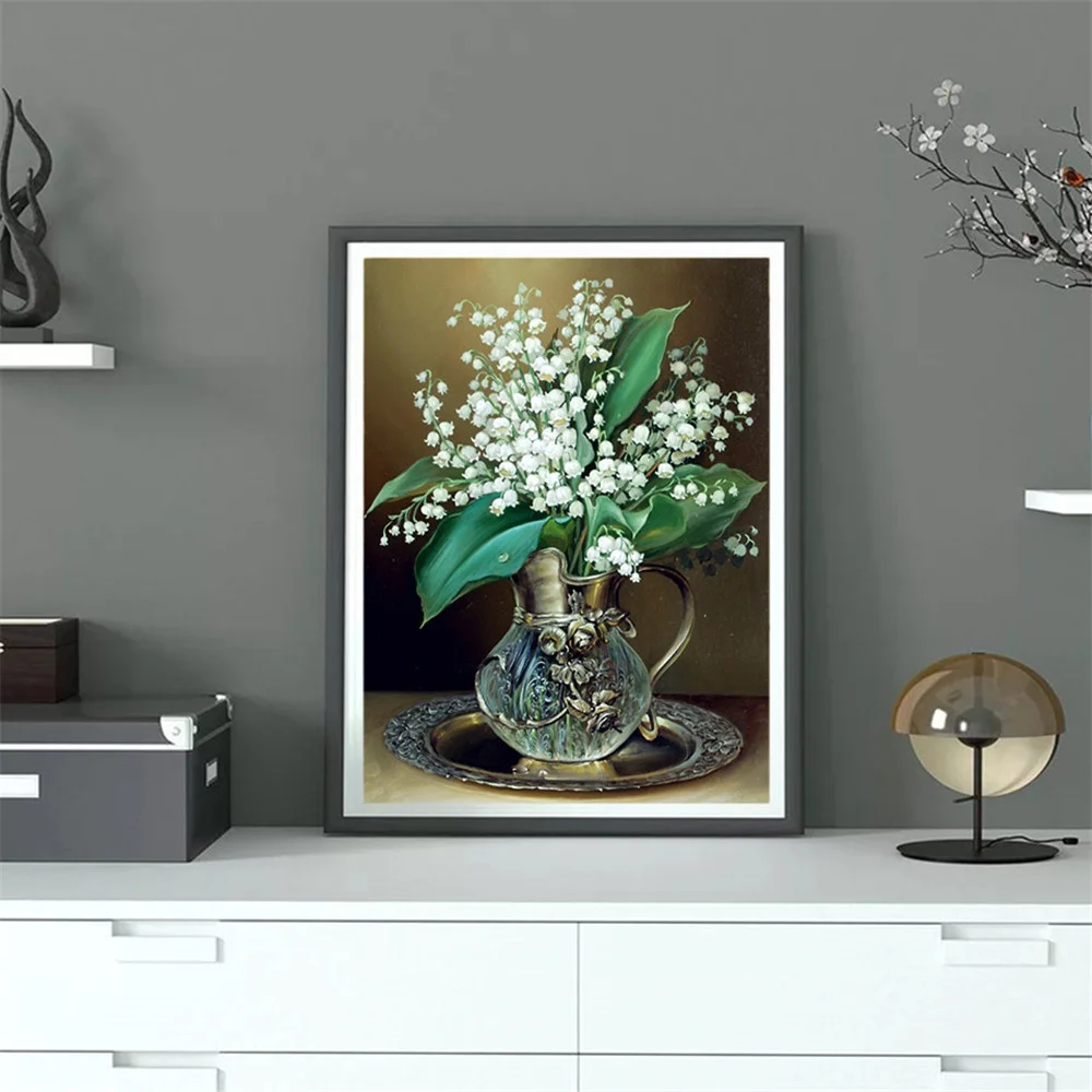 Алмазная 5D картина HUACAN, ваза из цветов, вышивка крестиком, украшение для дома, мозаика, украшение для стен