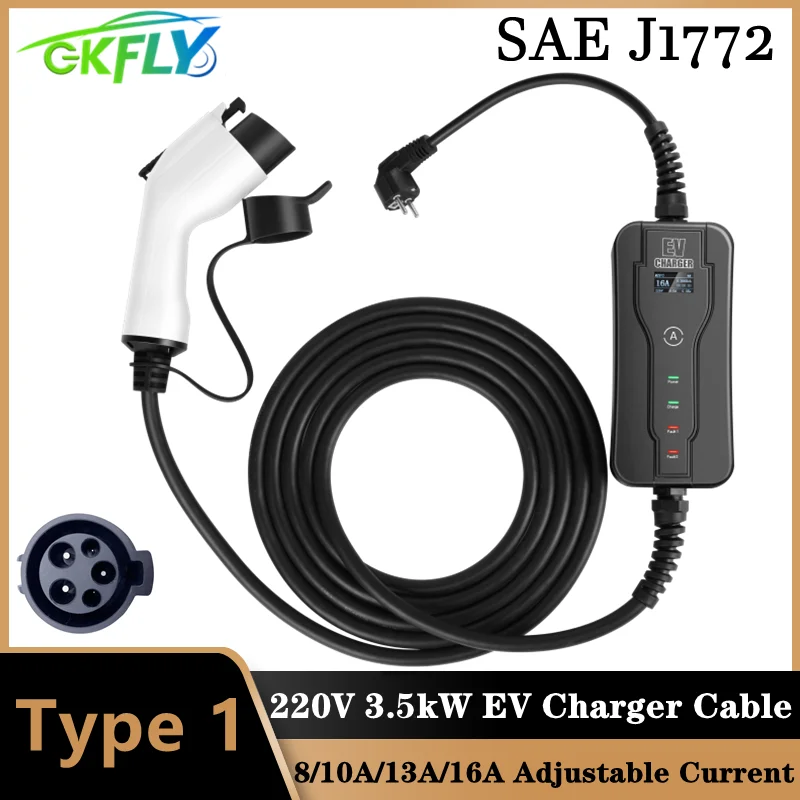 Автомобильное портативное зарядное устройство для электромобилей, 1 штекер типа 16 А, 5 м, SAE J1772, регулятор уровня 2 EVSE, зарядные станции для Leaf, 220 В