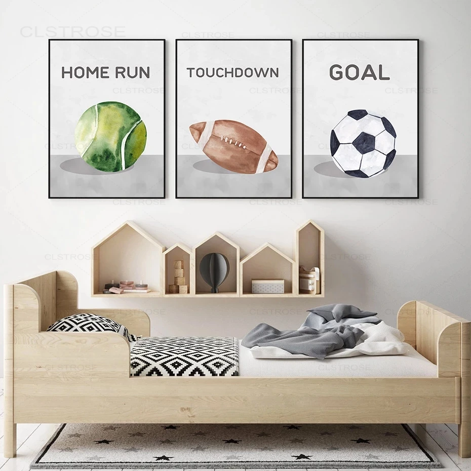 Акварельные спортивные мячи футбол настенное Искусство Холст Картина Печать постер картина для мальчиков-подростков для детской комнаты игровой комнаты домашний декор