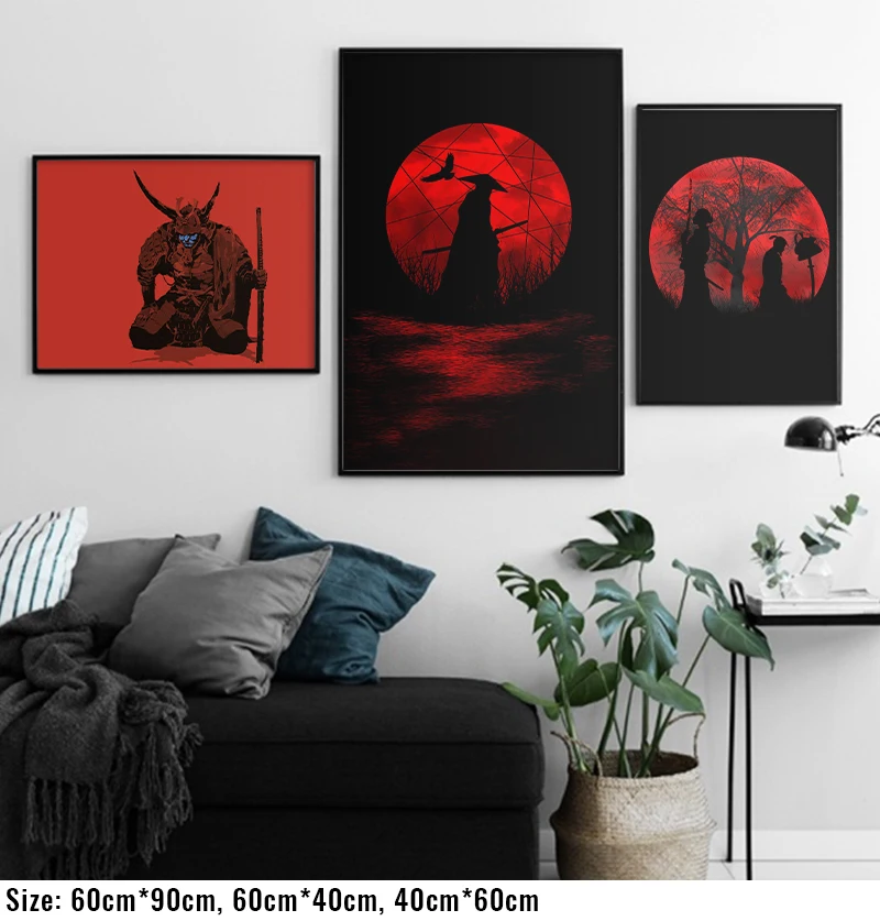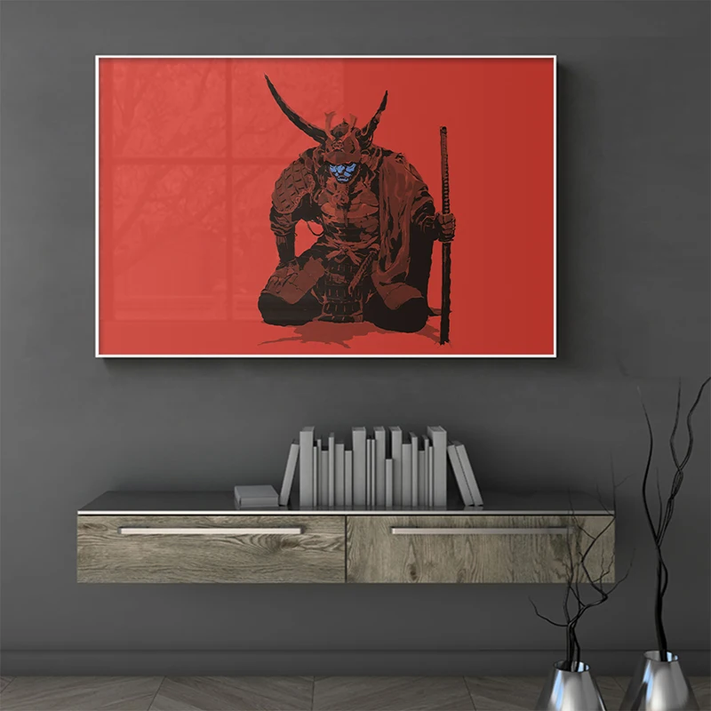 Японский Ukiyoe HD холст постер самурая с голубым лицом Катана настенные художественные картины для гостиной картина Печать украшение дома