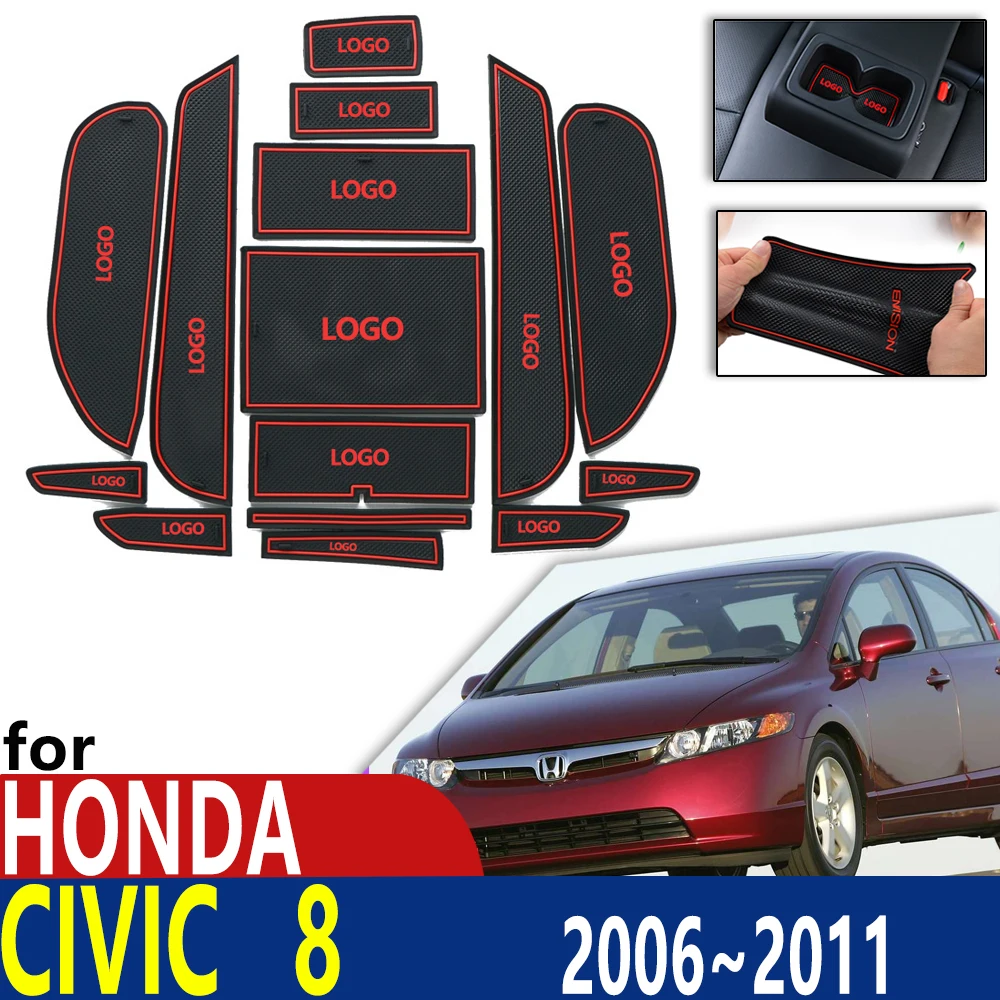 Противоскользящая резиновая подушка для чашки, дверной паз, коврик для Honda Civic 8 Type R FA FD 2006 ~ 2011 2007 2010 8, аксессуары, коврик для телефона