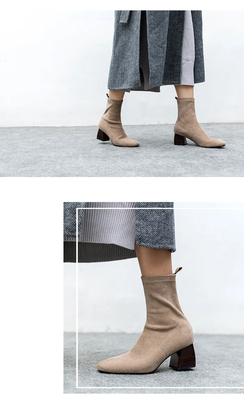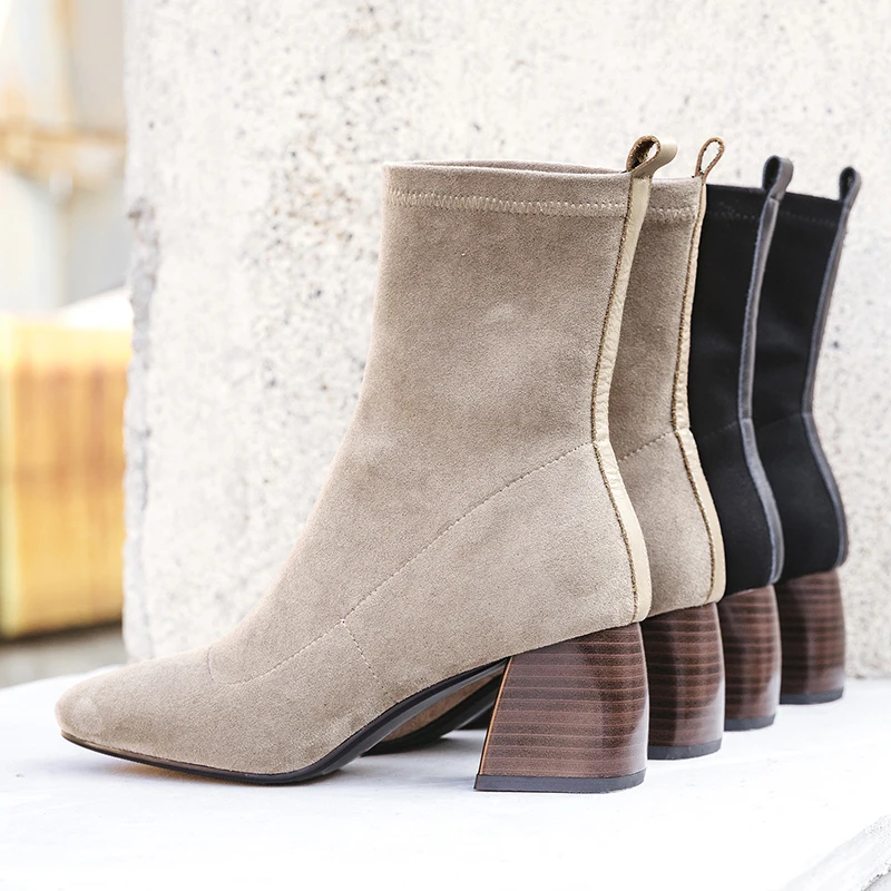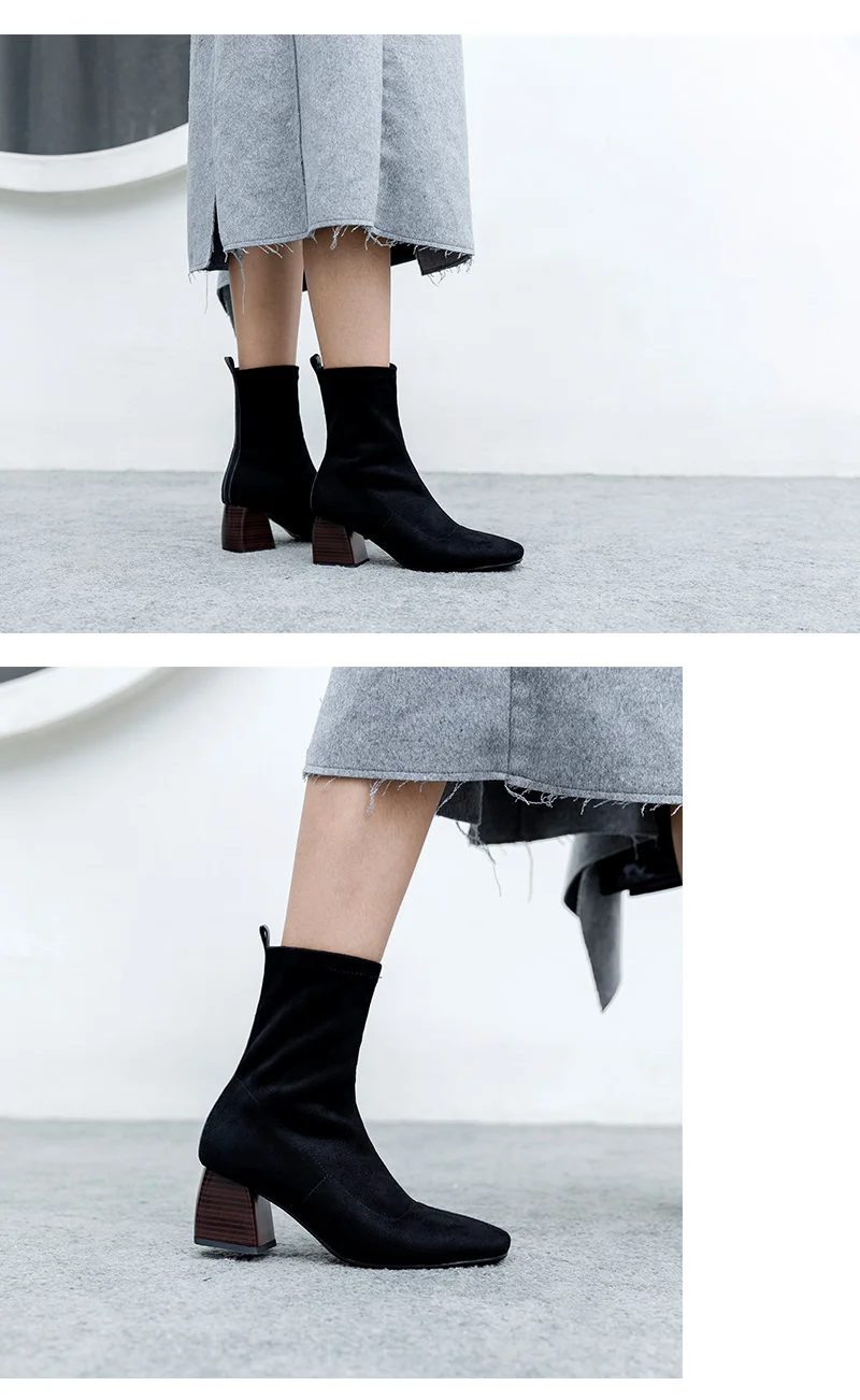 Женские ботинки в британском стиле, бархатные эластичные ботинки из...