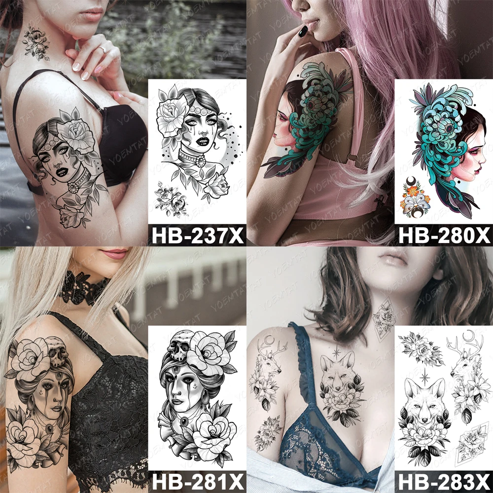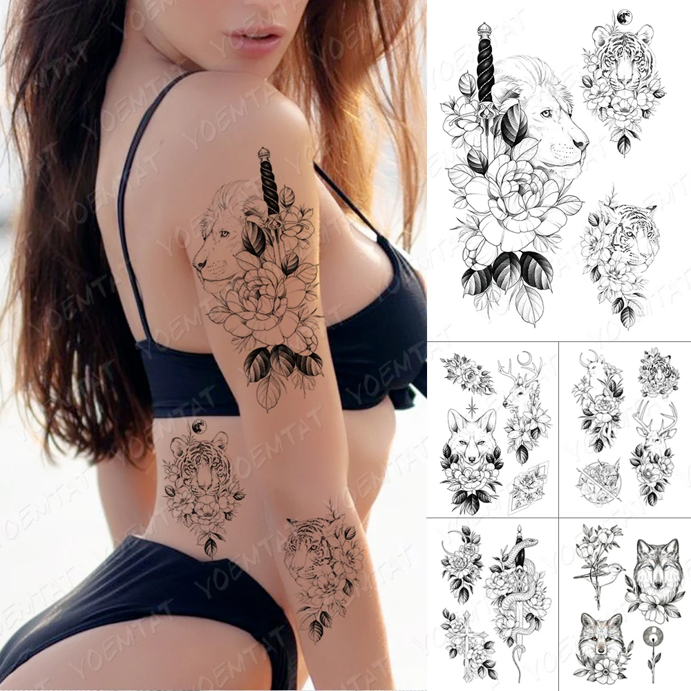 Водостойкая Временная тату-наклейка, Лев, кот, тигр, змея, волк, цветы, флэш-тату, линия, олень, боди-арт, искусственная татуировка на руку для женщин наклейки переводные тату татуировки временные стикеры мужские