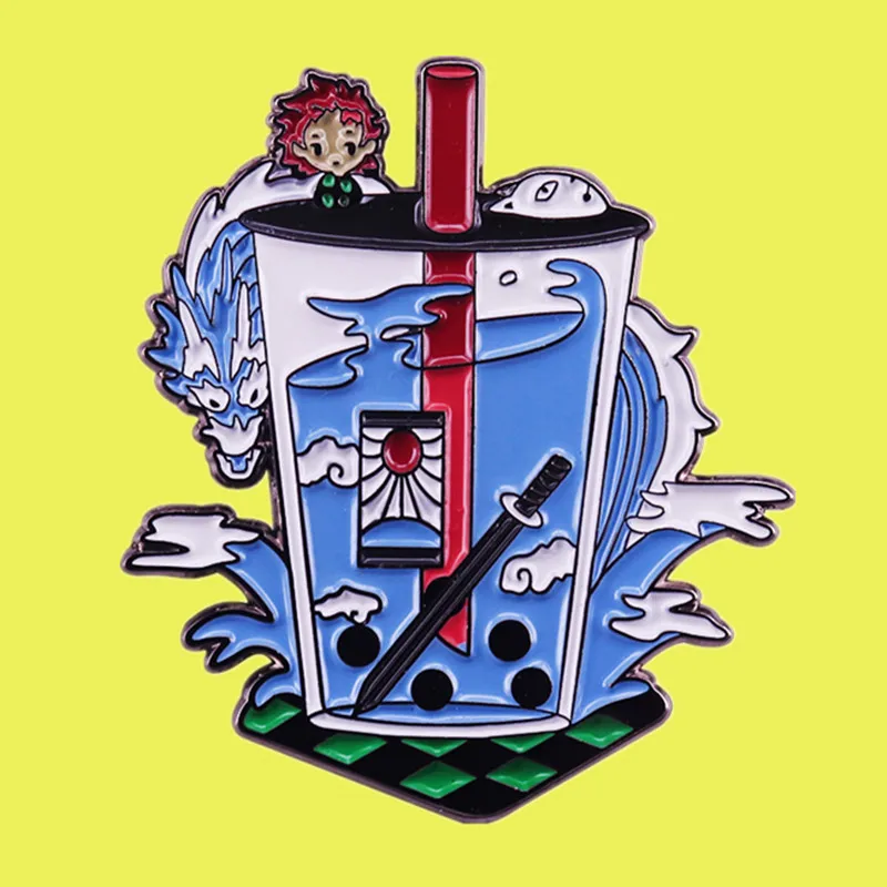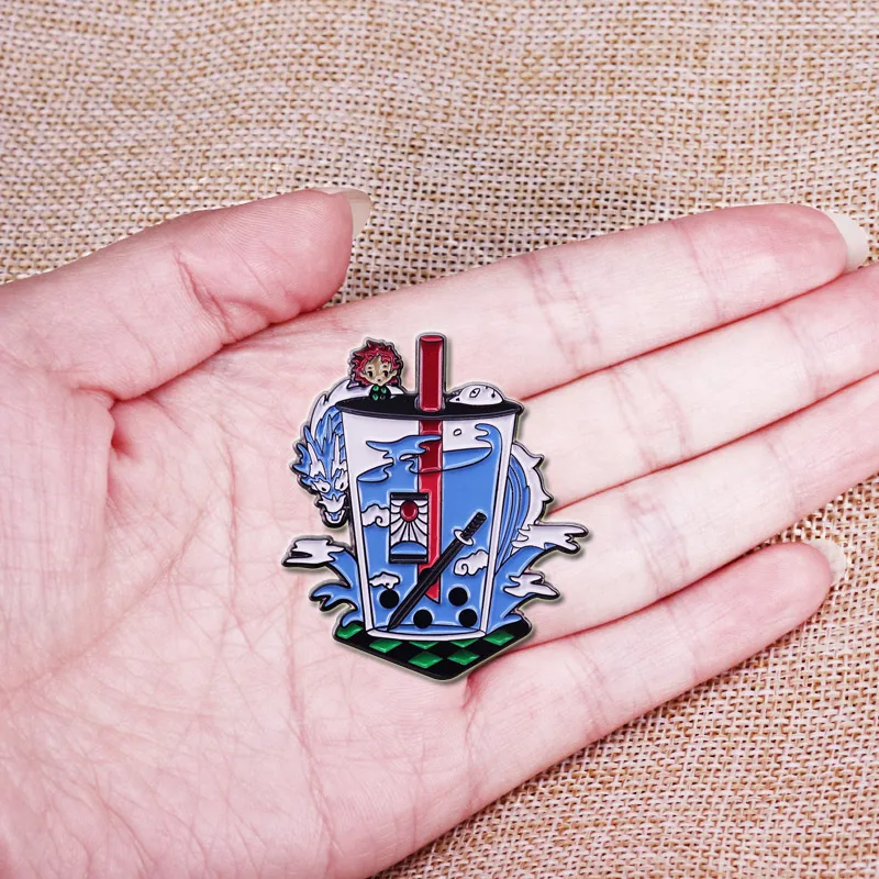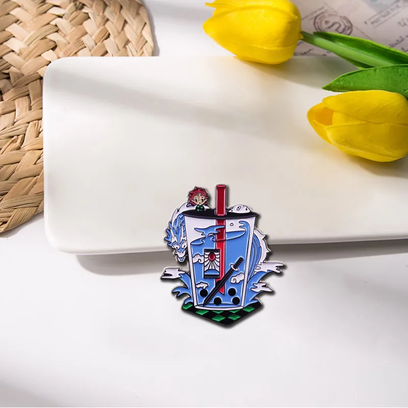 Серьги hanafuda, рассекающий демонов, эмалированная булавка в виде чая Boba, японская брошь в стиле манга, приключений, темная фантазия