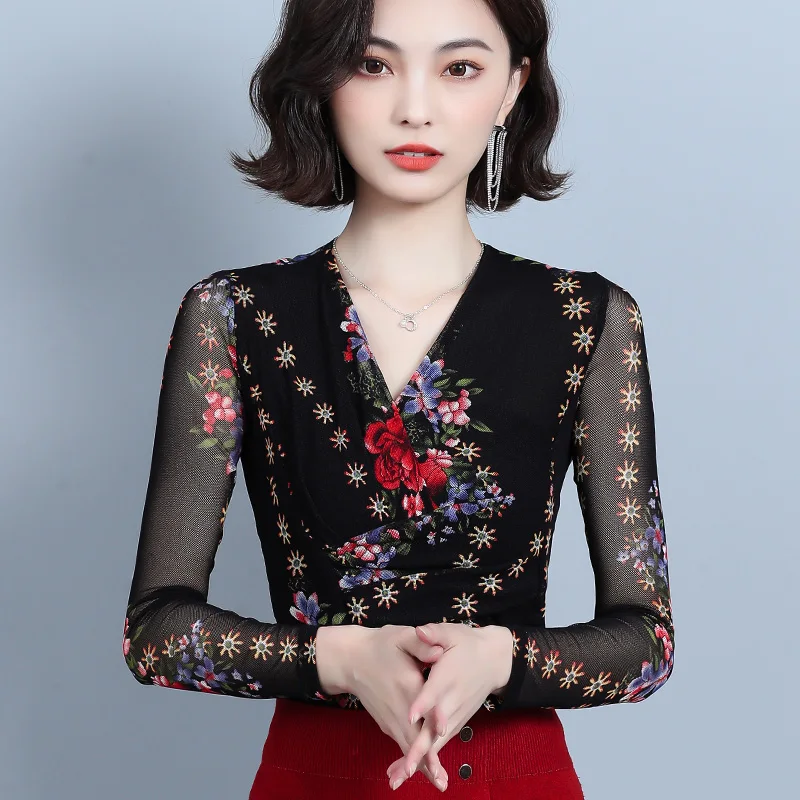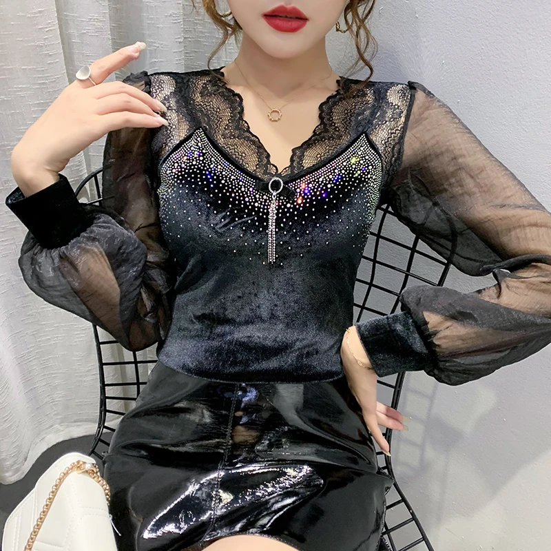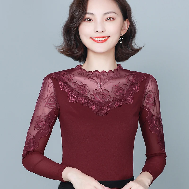 Женские кружевные блузки, весна-осень, рубашки с круглым вырезом и ...
