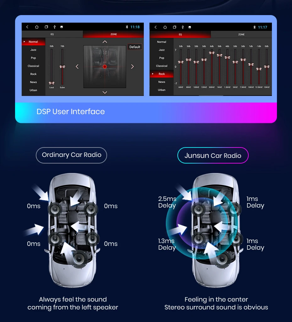 Junsun UI 3,0 новая версия, она будет работать более удобно, потому что большинство ваших ежедневных потребностей вождения будут удовлетворены этим пользовательским интерфейсом, сделать ваш интерьер автомобиля более прохладным.Пожалуйста, обратите внимание:-- Современное оборудование с местных складов в Испании, Польше и России до сих пор Junsun 2,0 UI. Если вам нужно обновить версию Junsun UI 3,0 после покупки, пожалуйста, свяжитесь с нами, чтобы обновить прошивку.-Устройство, отправленное из Китая,-версия Junsun UI 3,0