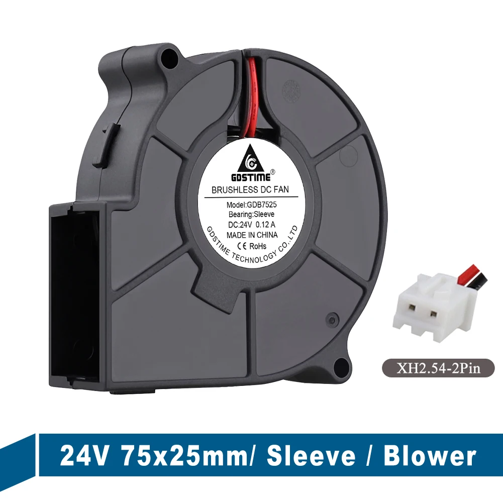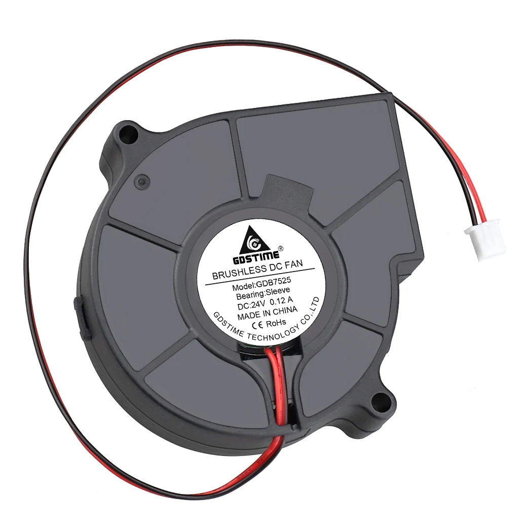 1 шт. Gdstime 75 мм 7525 24 В 2Pin 75x75x25 мм радиатор бесщеточная турбоцентрифуга постоянного тока охлаждающий вентилятор вытяжной вентилятор 3200 обмин