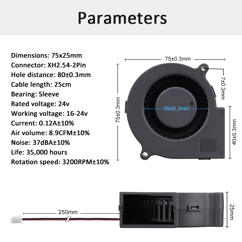 Охлаждающий вентилятор Gdstime, 24 В, 75 мм х 25 мм, с подшипником ...